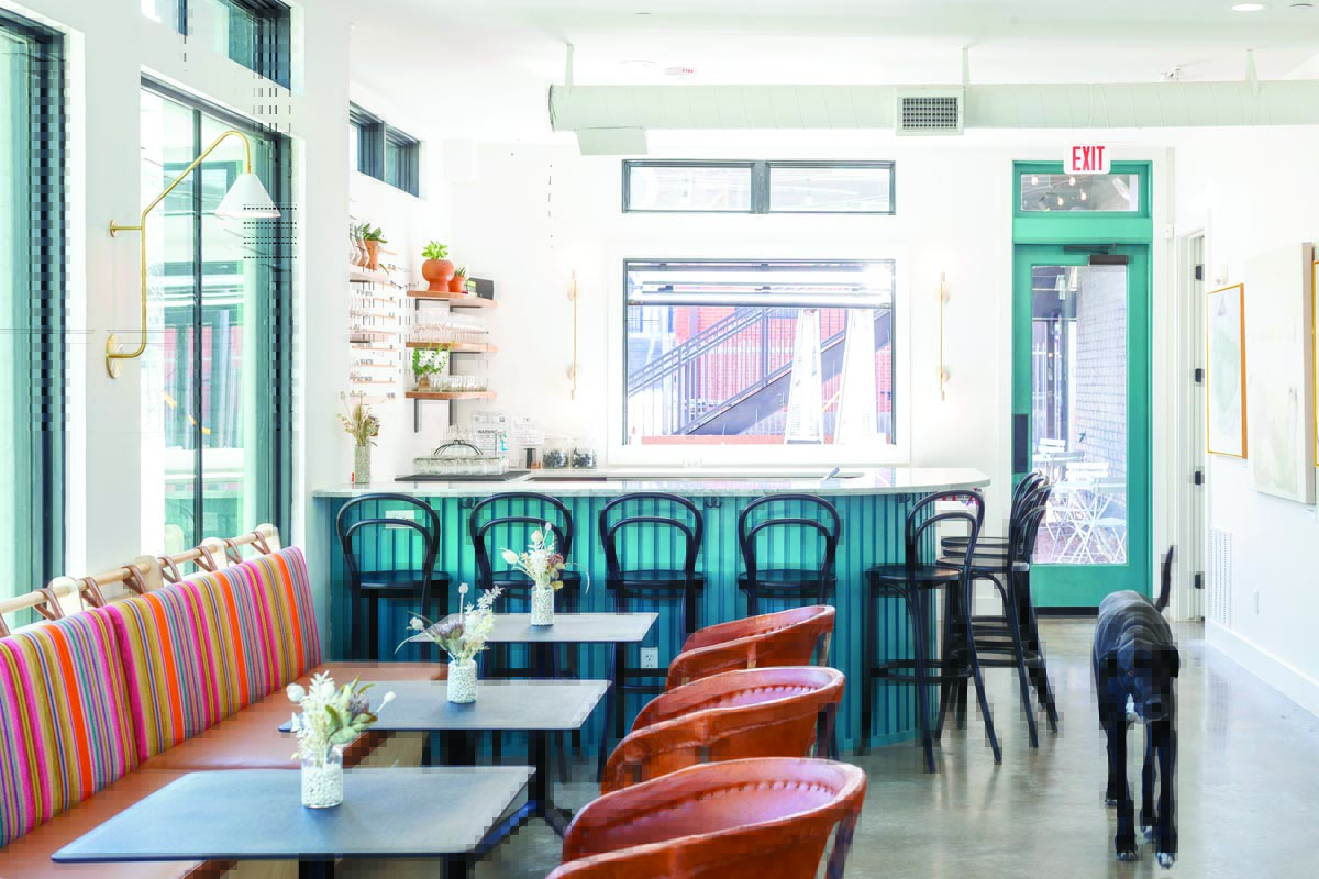 In order to make that prospect work financially, the Mearses came up with the idea of a work/live arrangement with rental income from a third part of the property. They also sold their Fairmount house to help fund the project and moved into an apartment. After closing on the corner lot in July 2020, they took seven months just to work out details such as sidewalks, alleys, trees and other exterior details with the city. They poured the foundation March 1, 2021, and opened The Holly (and moved in upstairs) this past November.