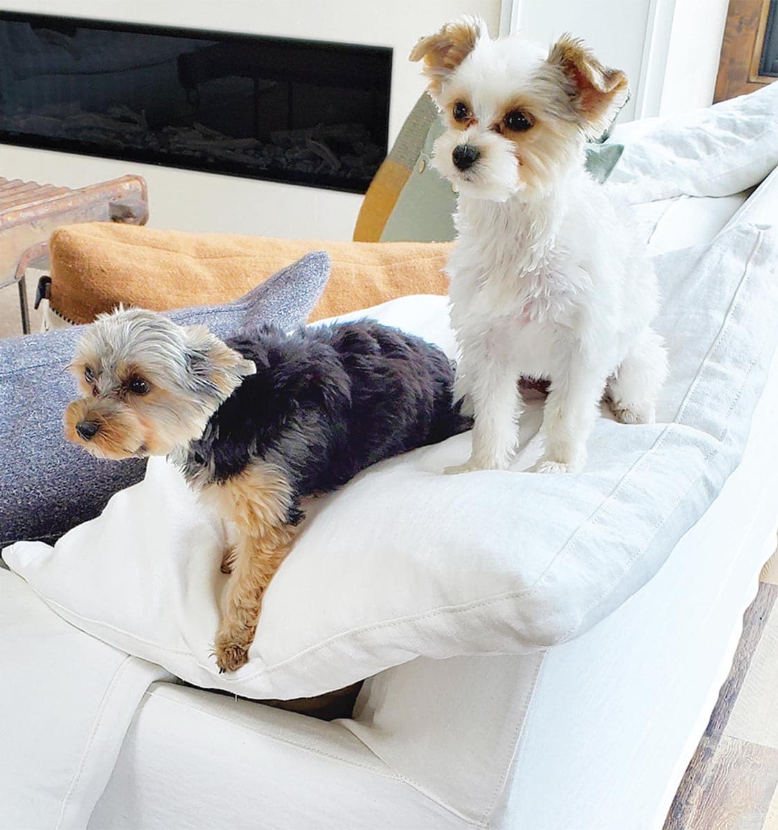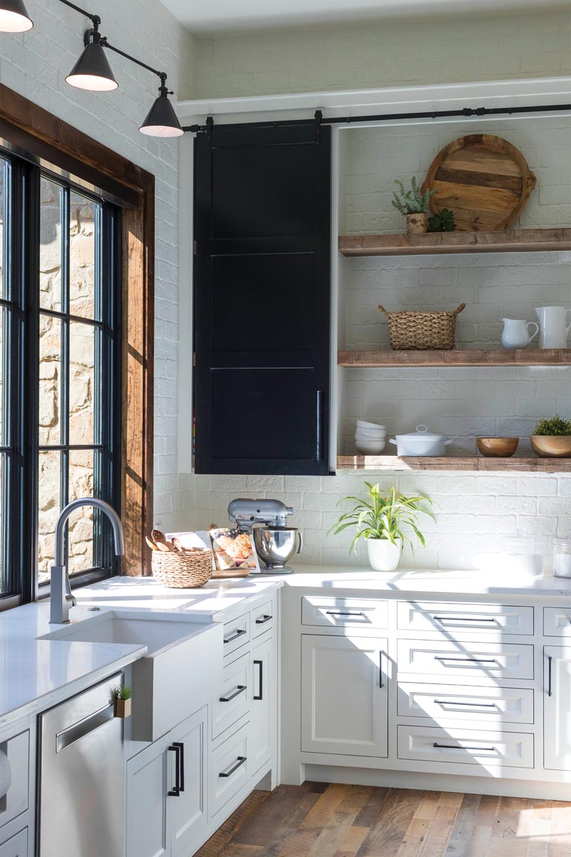 Inside, the light-filled home is a comfortable retreat for the Dumlers and their three young Yorkies — Maggie, Merry and Millie. “I didn’t want perfection,” says Patty, who welcomed the chance to depart from her previous Old World style for the interiors. “We’re also all about comfort and, yes, the dogs are welcome on the furniture.”