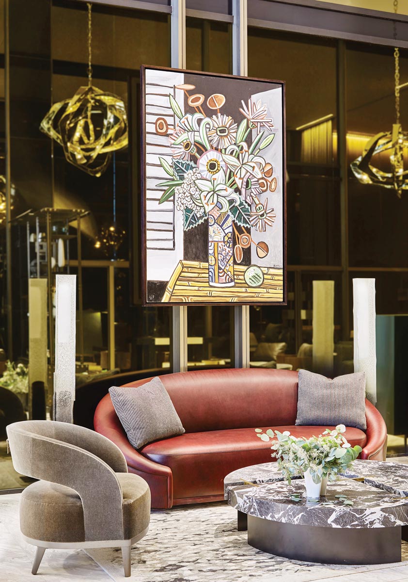 Part of a $460 million preservation project, Thompson Dallas has spaces adorned with $2 million in artwork (paintings by David Yarrow, David Bates and JD Miller, and sculpture by Raul Mourão) and brings heavy hitters in design to the fore. Chandeliers come from Hudson Furniture in New York; there’s a stunning marble-and-brass Hervé Langlais coffee table from PAD London; and custom-made wallpaper is sourced from Dallas’ Craft Wallcovering.