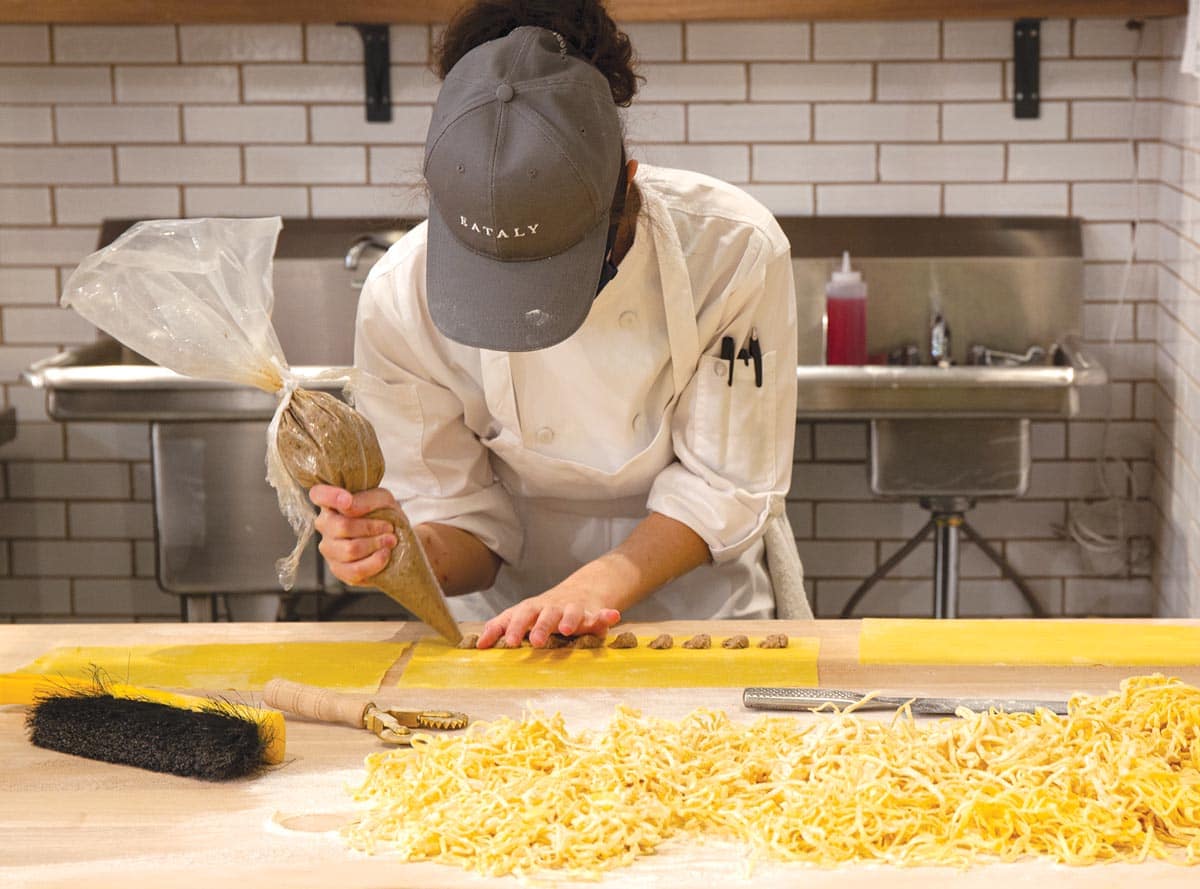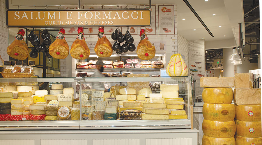 The fresh pasta counter is stocked by in-house crafters who make some 18 to 20 varieties daily. Cheese lovers will find more than 200 Italian varieties to choose from; and you can watch them make fresh mozzarella. Beautiful breads and pastries are hard to pass up. The butcher counter displays a sizable supply of bone-in beef, lamb and pork, with wagyu brisket, rib-eye and tri-tip steak arriving from nearby A Bar N Ranch. Seafood cases include seasonal catches such as branzino, wild red drum and black sea bass. And then there are the 1,300 different Italian wines.