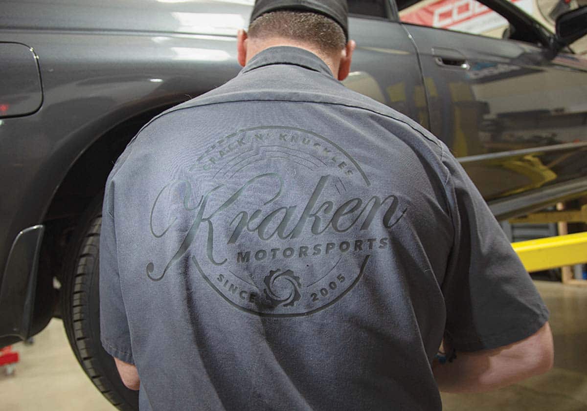 About 25 percent of their business comes from modifying race cars, while the majority of the shop’s customers are interested in souping up a street-legal ride — making it go faster, turn better, stop quicker. “Some guys drive them to work and take them to the track on weekends,” says Shawn. And women do, too; they make up about one-tenth of Kraken’s customers.
