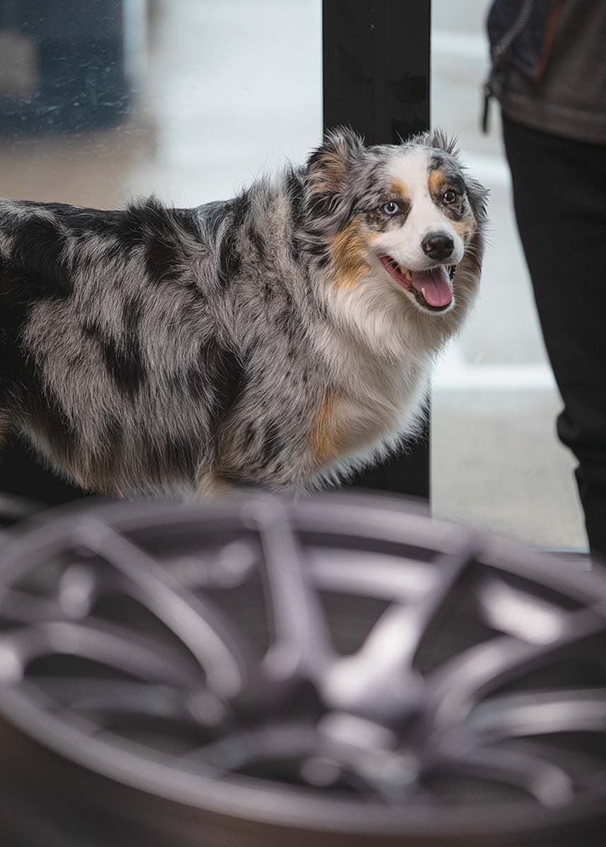 “It’s a big trend in Japan to have these little cars; you get a credit from the government because of the super low emissions,” says Shawn, adding that the Sambar is the dog’s favorite. “We have a tether leash so she can move back and forth but is still attached and safe,” he says. “It’s a bench seat, so she can go between the giant side windows.”