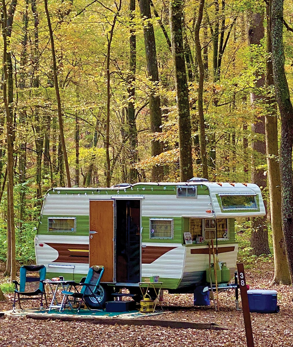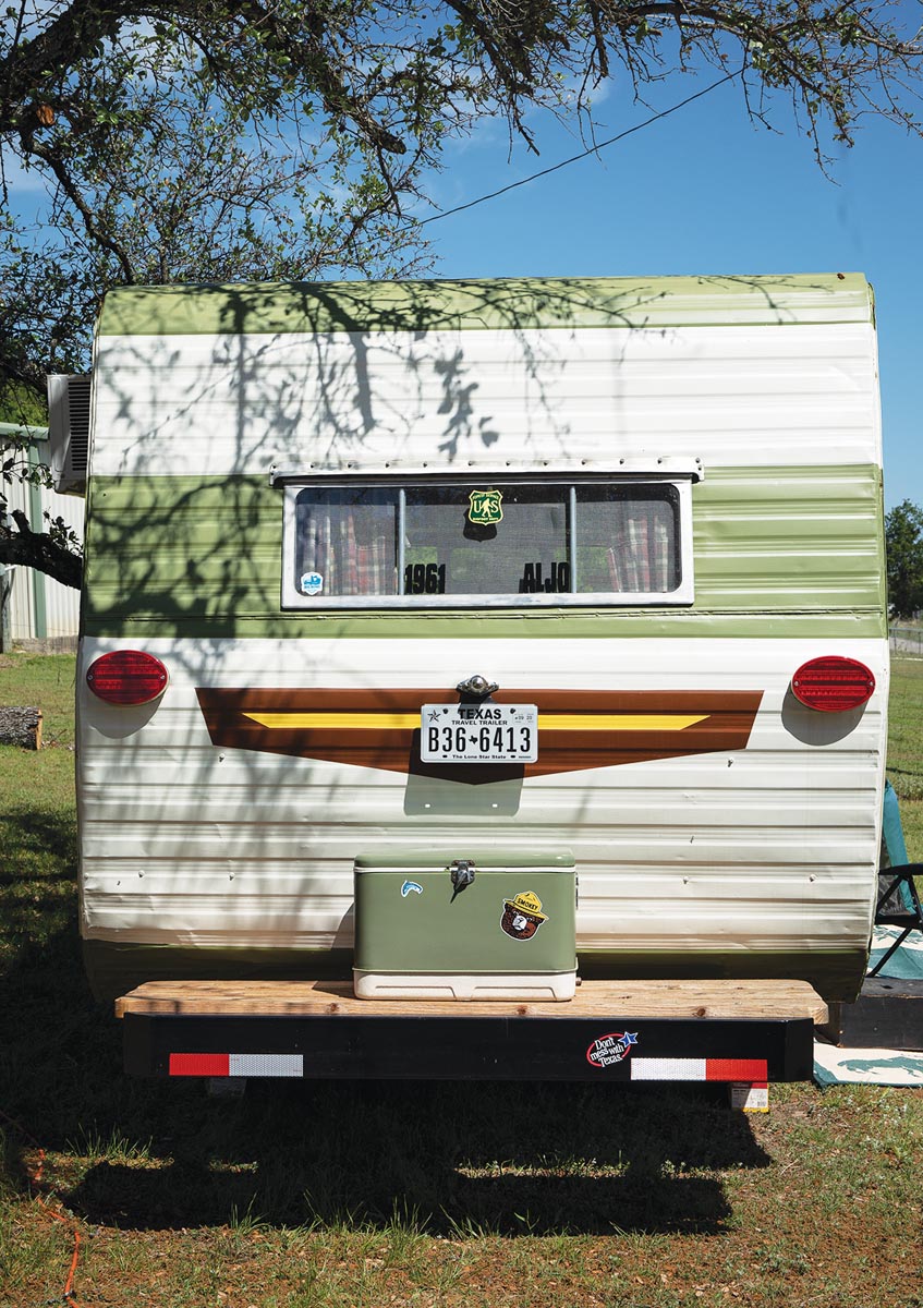 When they do roll up to a park, they’re typically the only ones, or one of a few, with a vintage camper. “Apparently big RVs have been hot sellers during COVID,” says Stober, who prefers the character and flair of the old-school designs. “People do like to ask questions and check out the Aljo, however.”
