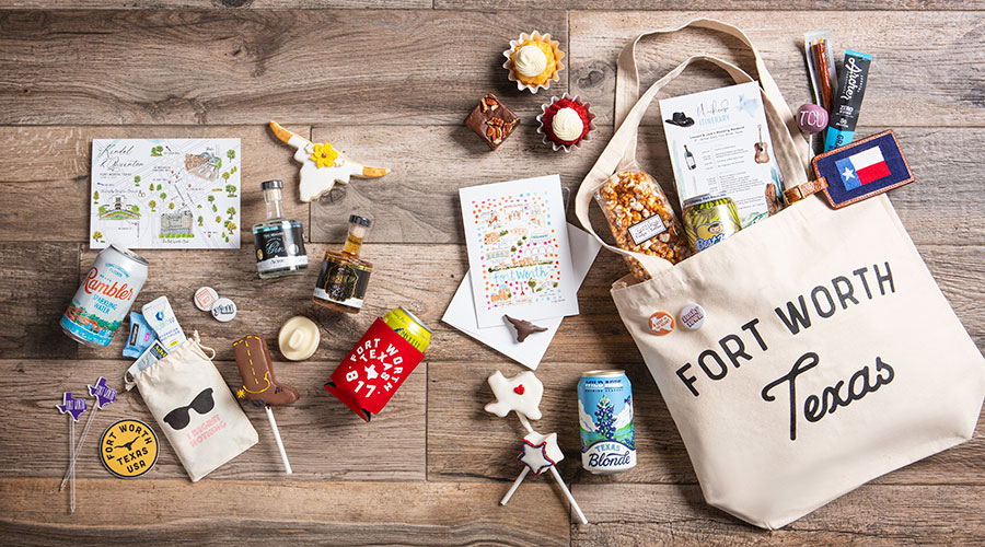 Locally sourced gifts and goodies curated to make the ultimate Fort Worth welcome bag for your guests.