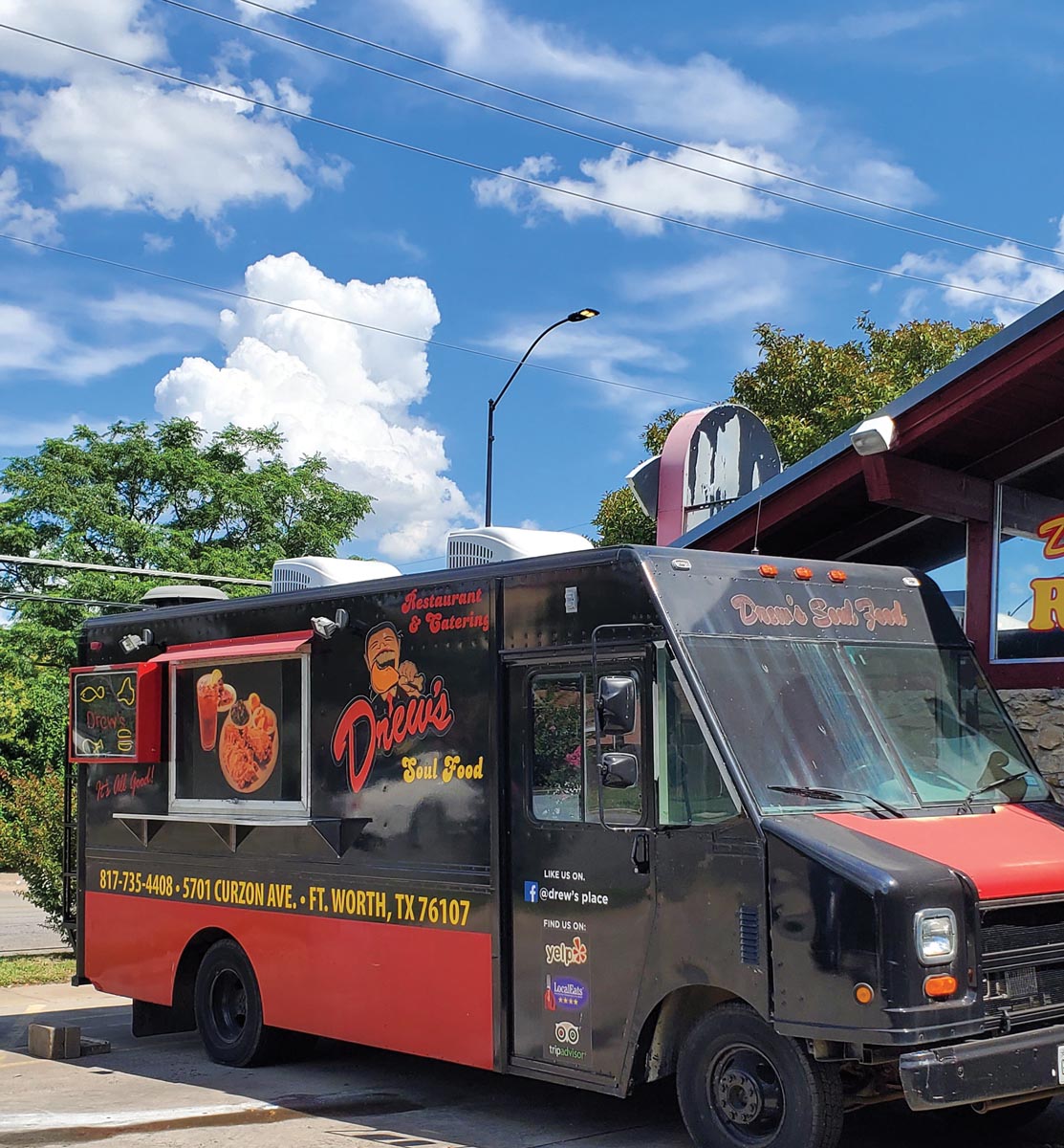 Drew’s Place Order to-go lunch from 11 a.m. until 3 p.m. Tuesday through Saturday by phone or via the restaurant’s smartphone app. Check the website for news of dining room reopening dates. 5701 Curzon Ave., Fort Worth, 817-735-4408, drewssoulfoodfw.com