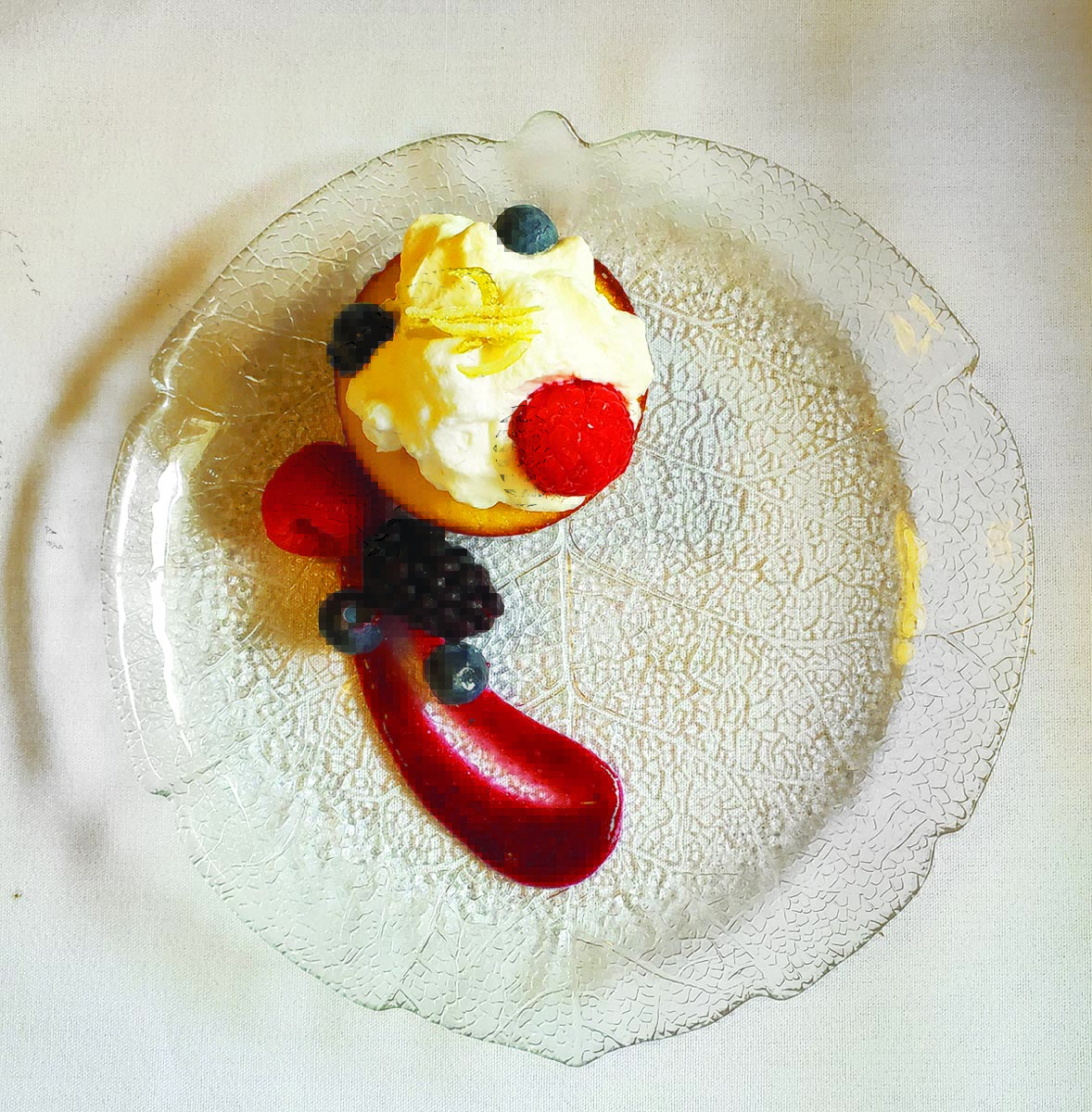 Her emphasis is on fresh, seasonal food with everything procured as locally as possible. Each month’s menu includes three selections under each category: appetizers, entrees and desserts. The curated wine list includes New and Old World vintages (a monthly wine dinner returned in June); bottles on offer are displayed on one wall.