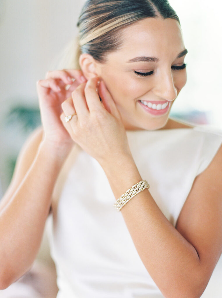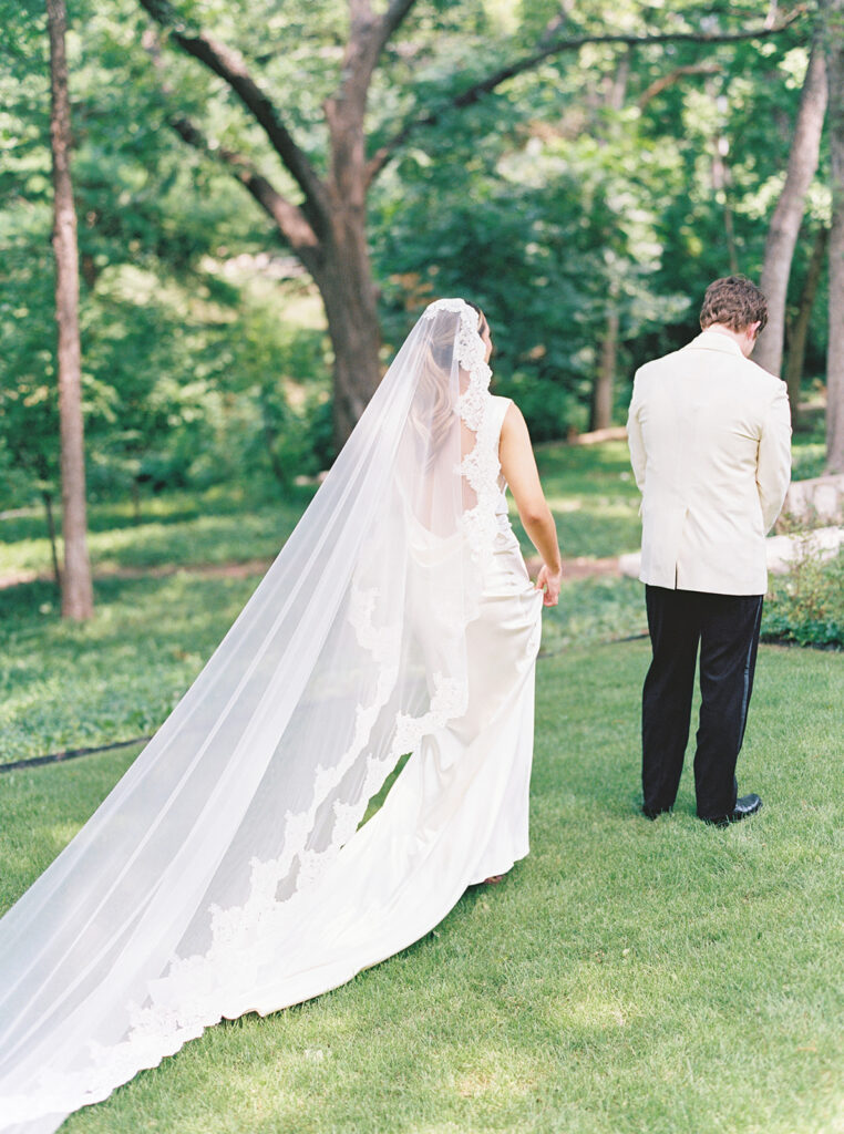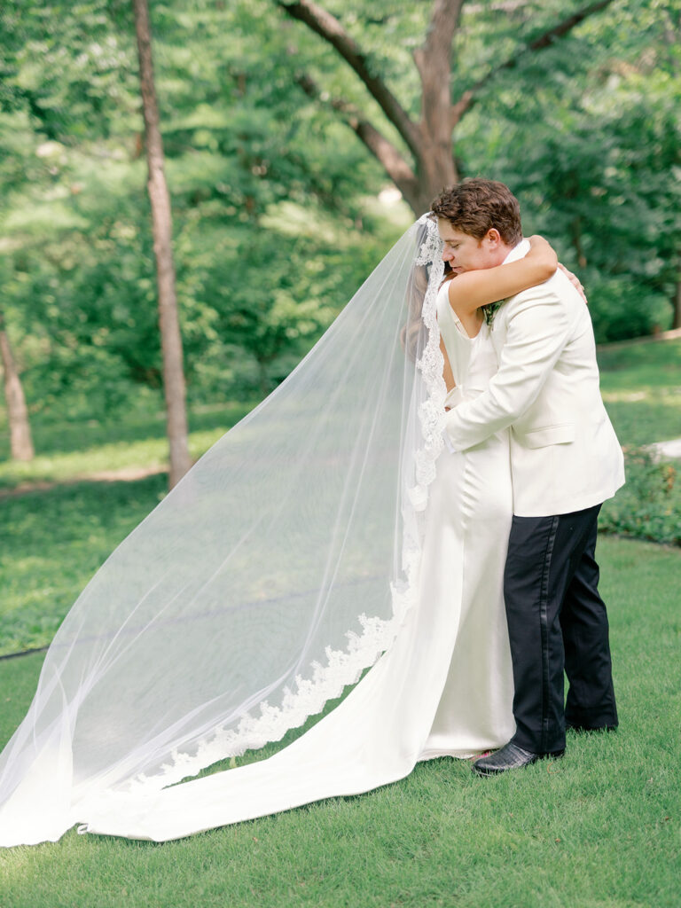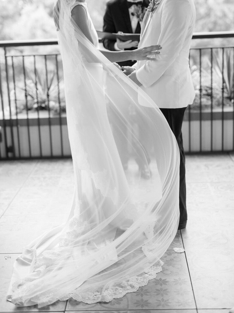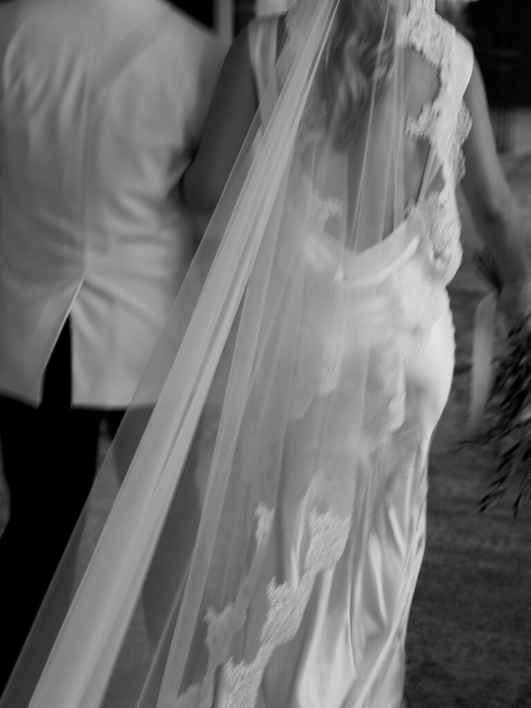 The earrings I wore on my wedding day were a last-minute addition. Chase gifted them to me the morning of our wedding and they fit seamlessly with my dress so I had to wear them. My veil was one of my favorite parts of my look. It was a vision I had for a long time and it came together so beautifully thanks to Mi Bridal which I found on Etsy. This veil felt like an appropriate, elegant nod to my Italian heritage of which I’m very proud and complimented my dress perfectly.