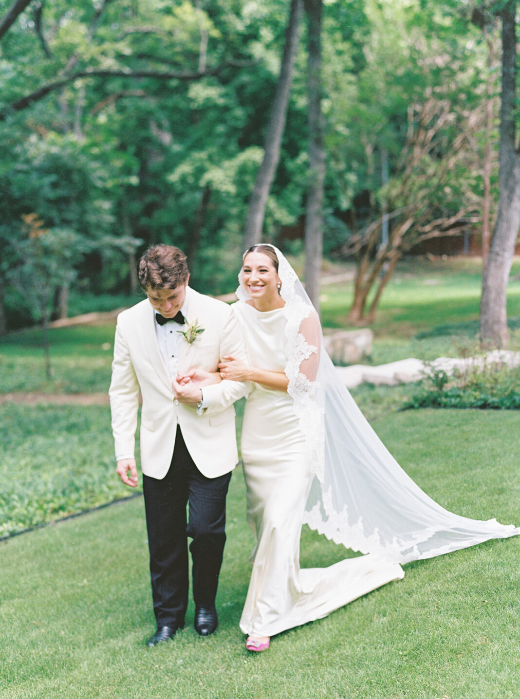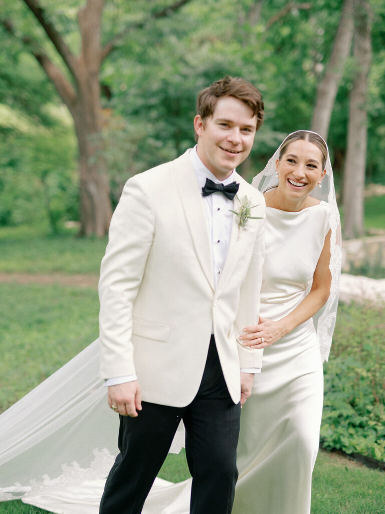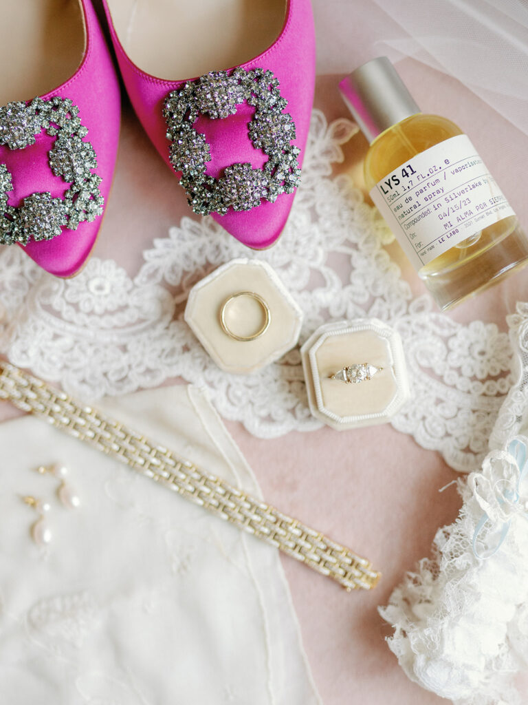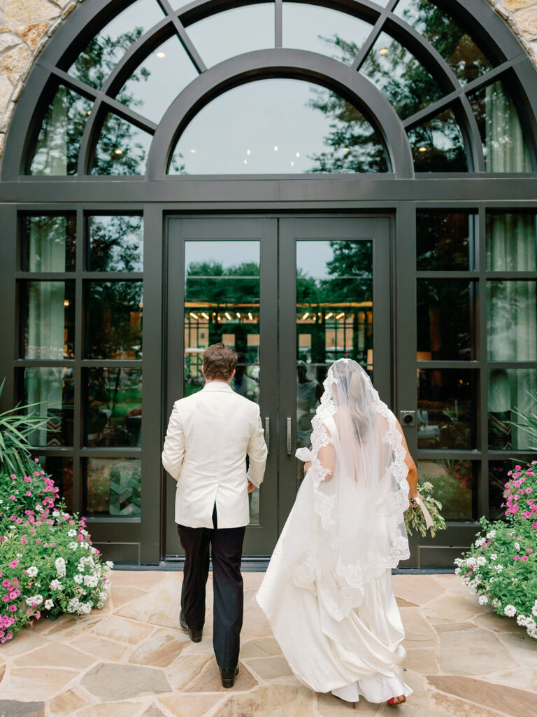 The earrings I wore on my wedding day were a last-minute addition. Chase gifted them to me the morning of our wedding and they fit seamlessly with my dress so I had to wear them. My veil was one of my favorite parts of my look. It was a vision I had for a long time and it came together so beautifully thanks to Mi Bridal which I found on Etsy. This veil felt like an appropriate, elegant nod to my Italian heritage of which I’m very proud and complimented my dress perfectly.