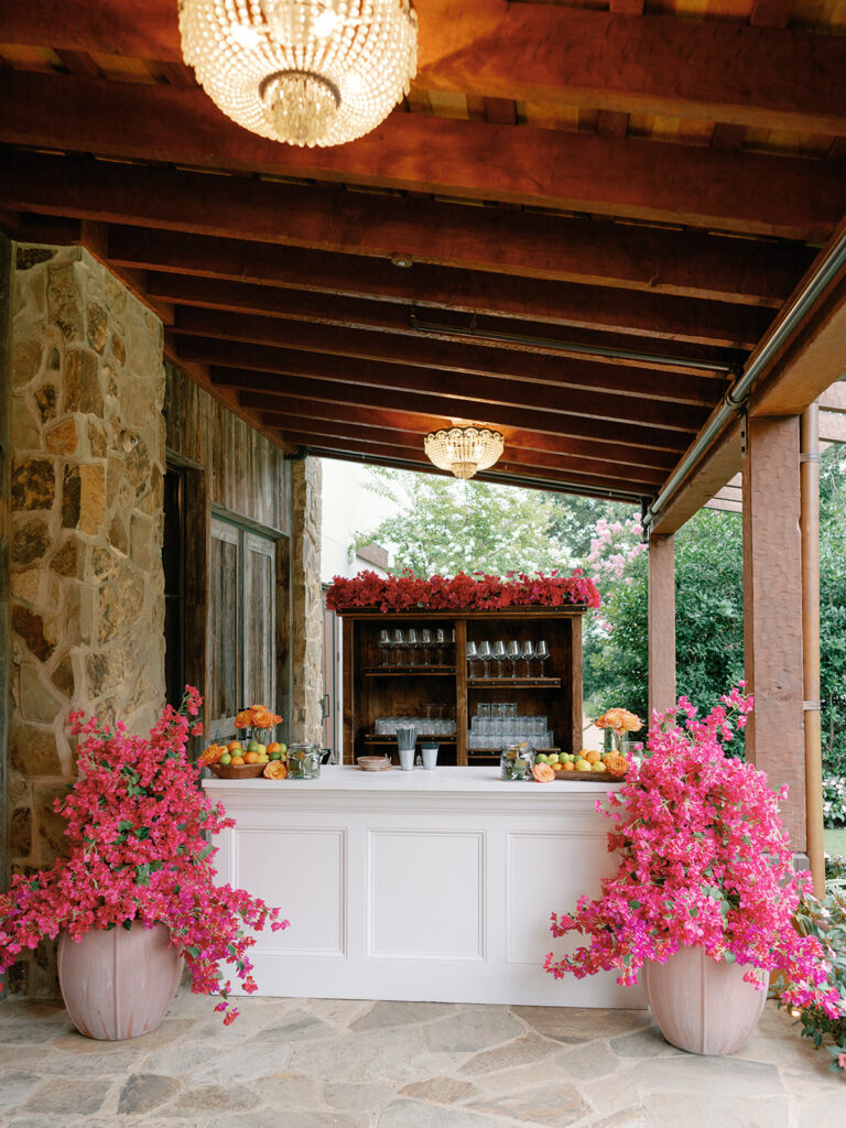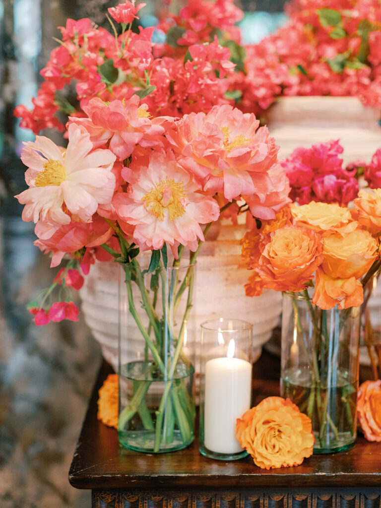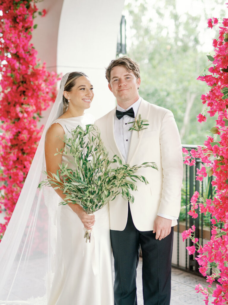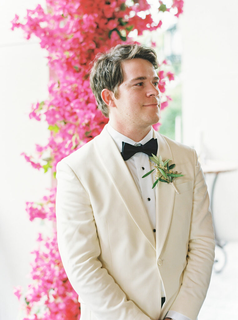 Jim [Irwin] is a dear friend of my mom’s and was the only person we were going to turn to for florals for a day like this. He brought in everything I wanted from bougainvilleas to olive branches to herbs to candles galore! Seeing the finished product was like a dream!