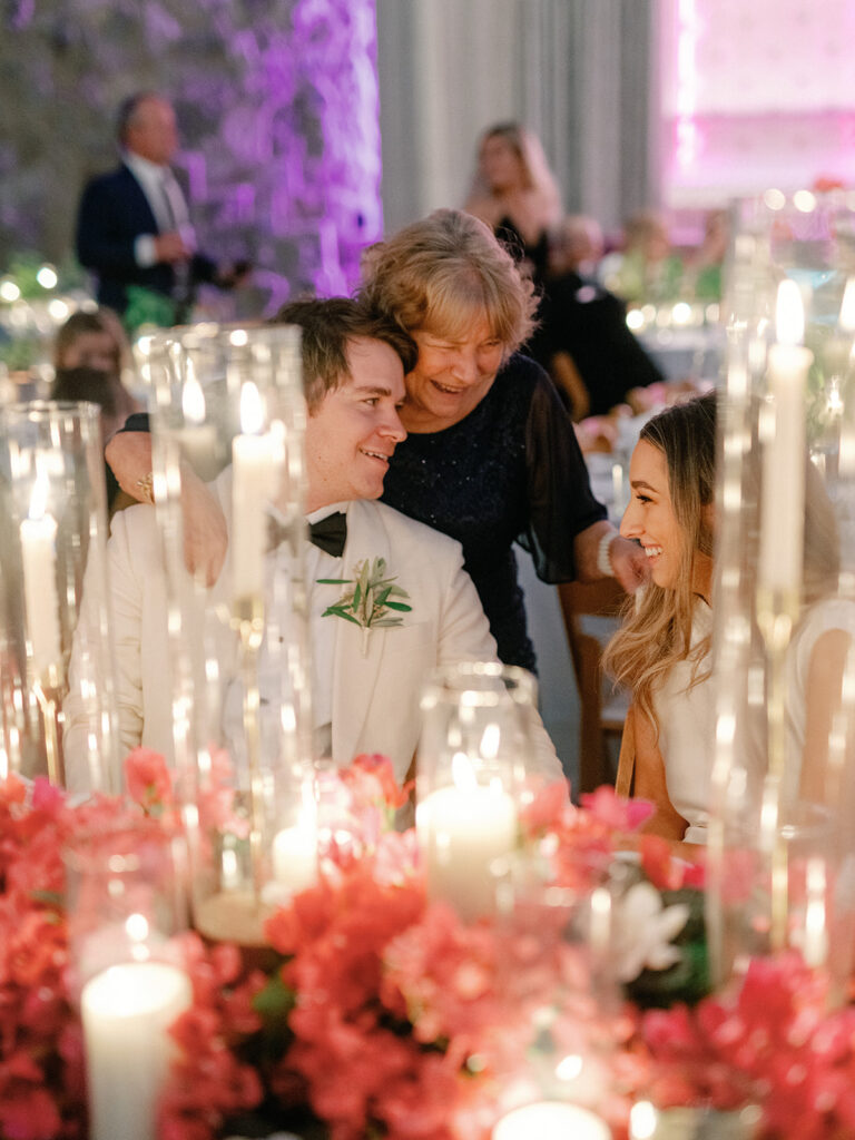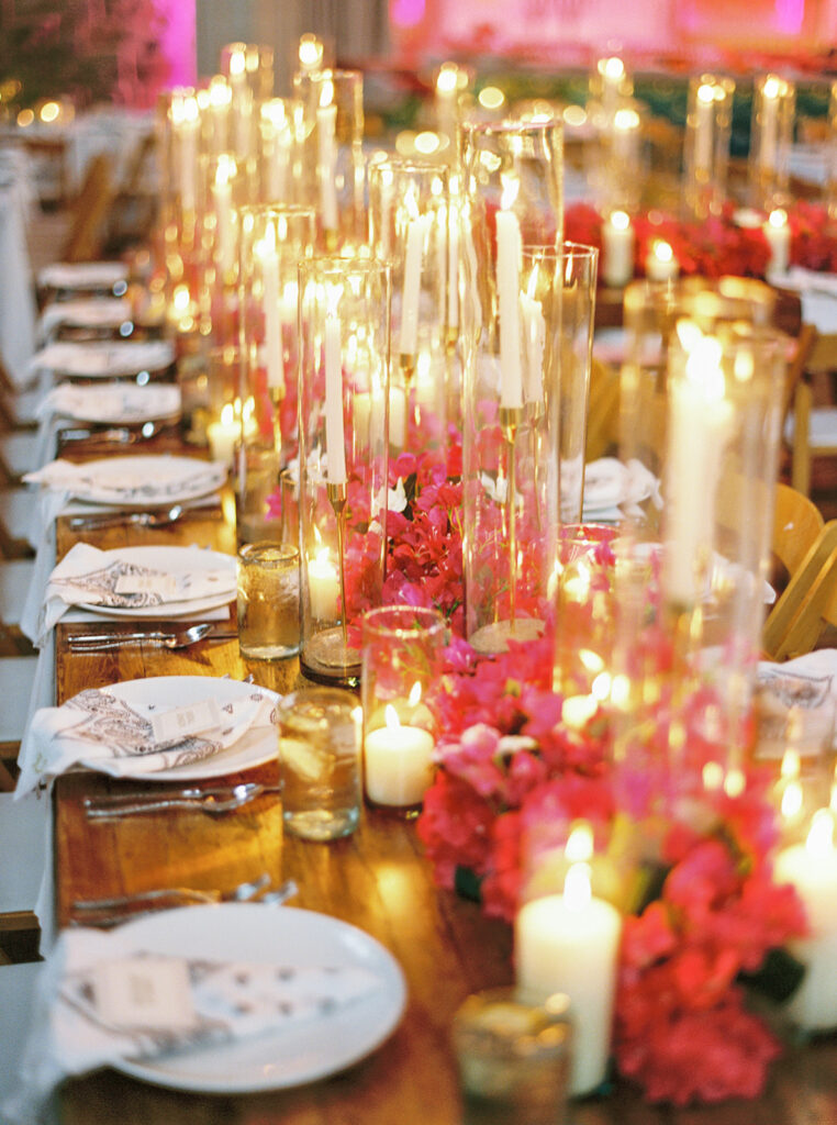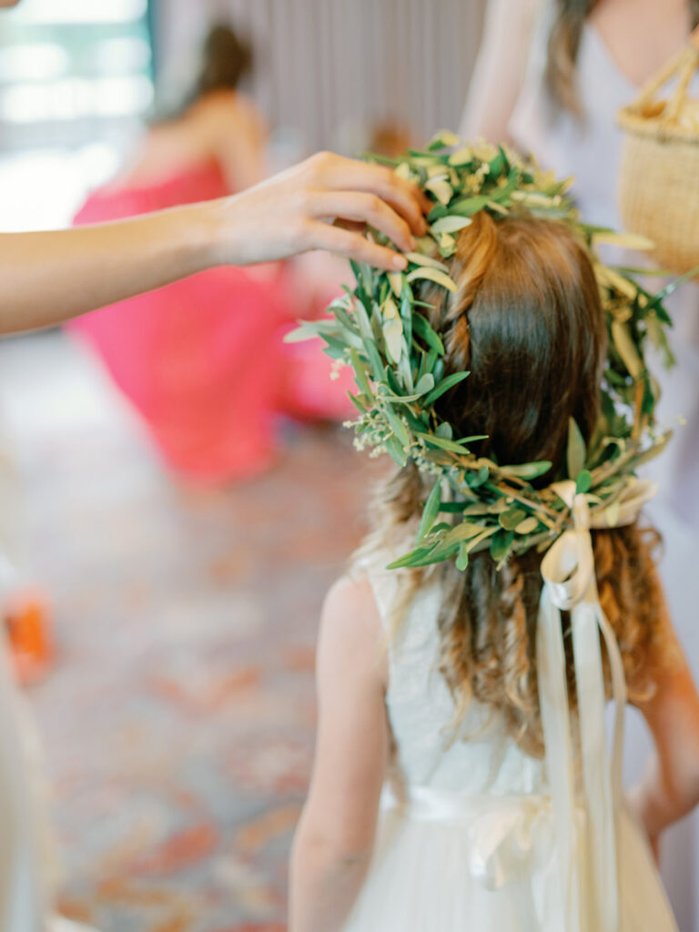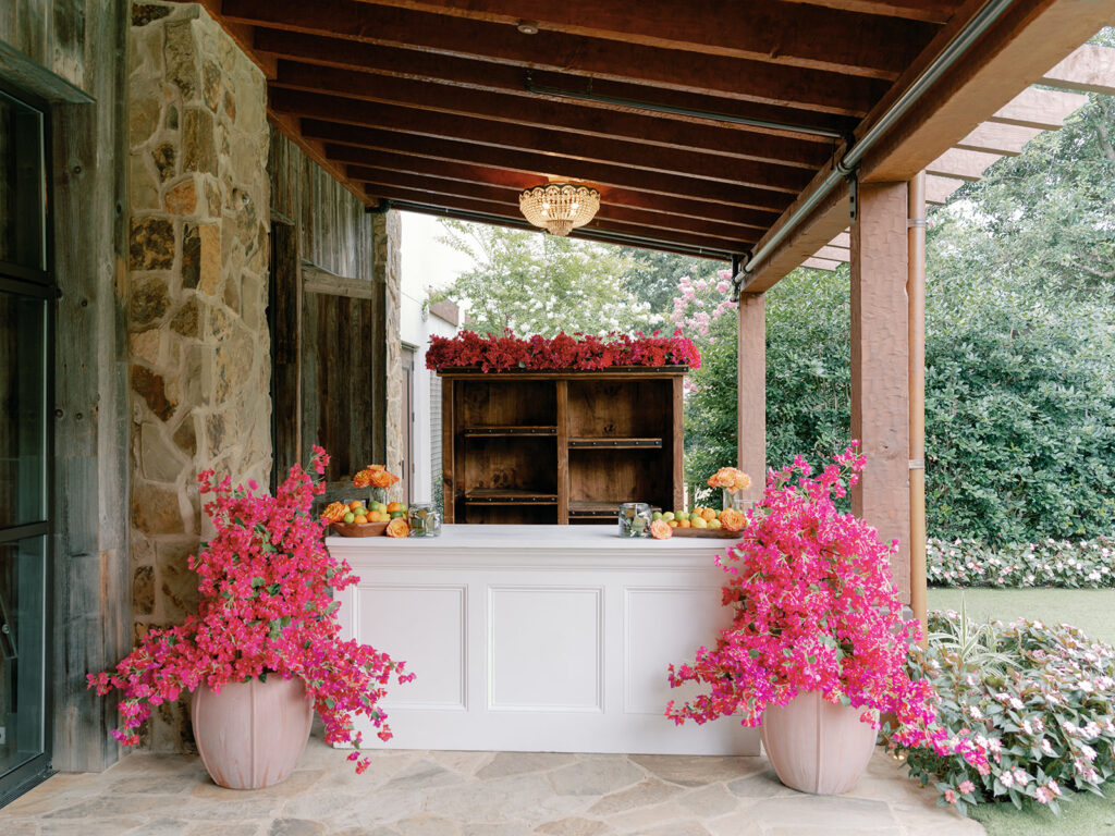 Jim [Irwin] is a dear friend of my mom’s and was the only person we were going to turn to for florals for a day like this. He brought in everything I wanted from bougainvilleas to olive branches to herbs to candles galore! Seeing the finished product was like a dream!
