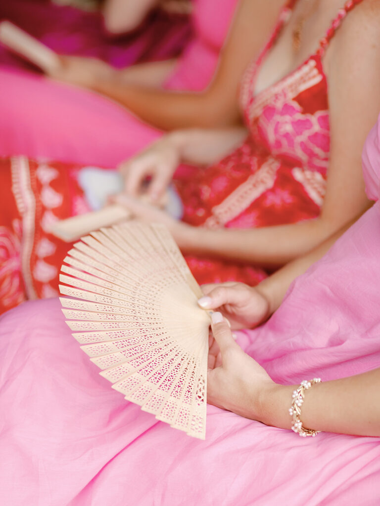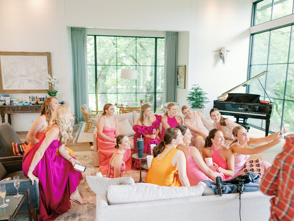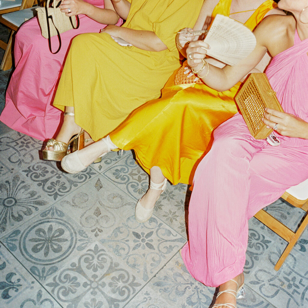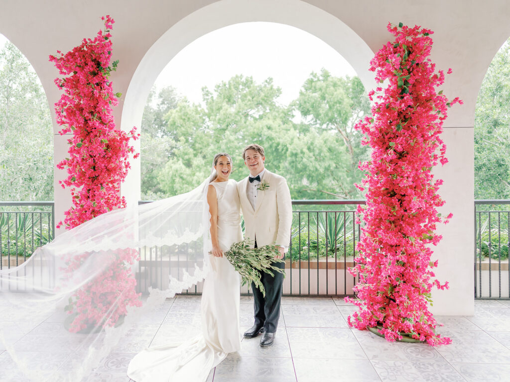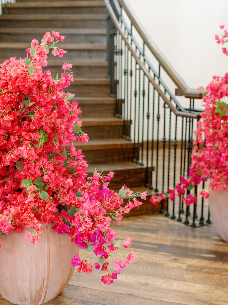 With as many bridesmaids as I had, I wanted to make their lives and mine as easy as possible. I told them they could wear whatever color they pleased, but if they wanted a bit of guidance they could wear any shade of a bougainvillea. Luckily, bougainvilleas come in many colors so seeing what everyone picked and how the variety of colors turned out was such a fun surprise for me! Everyone standing together looked so fabulous!