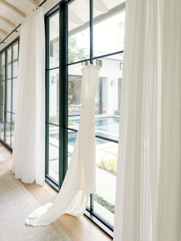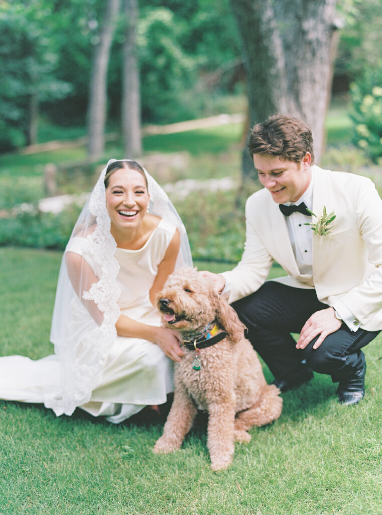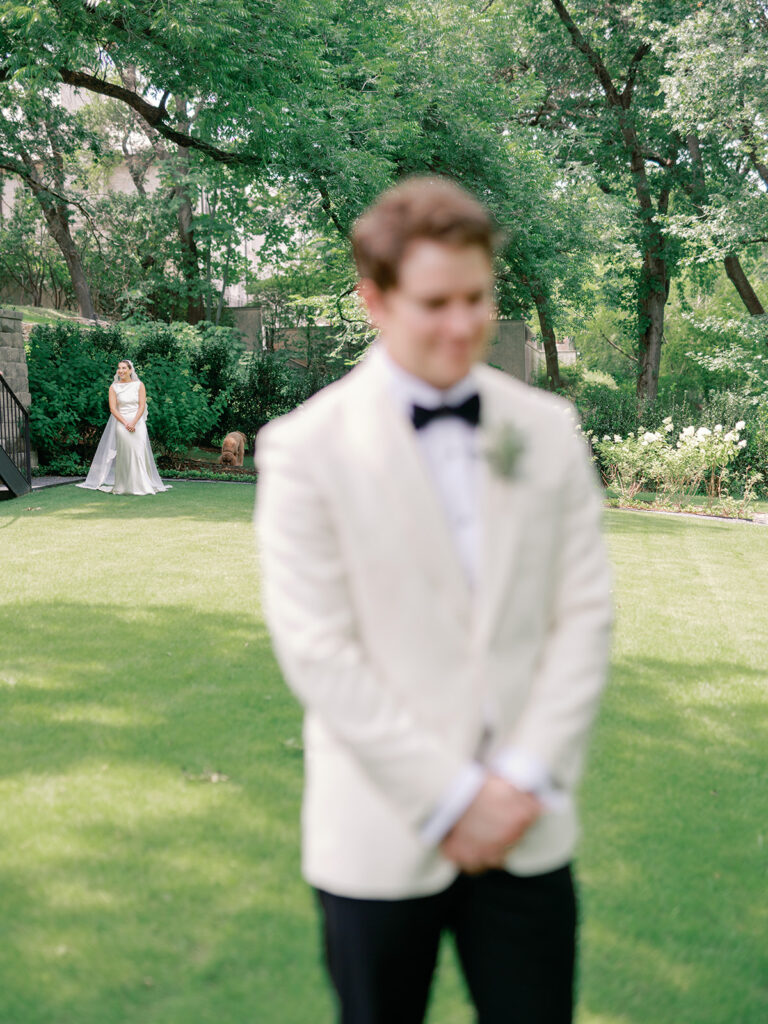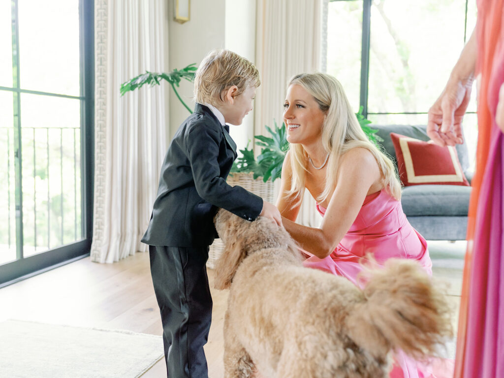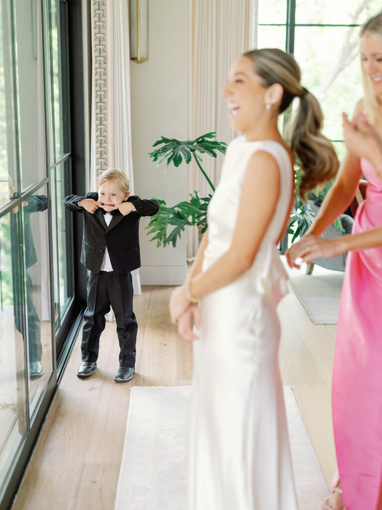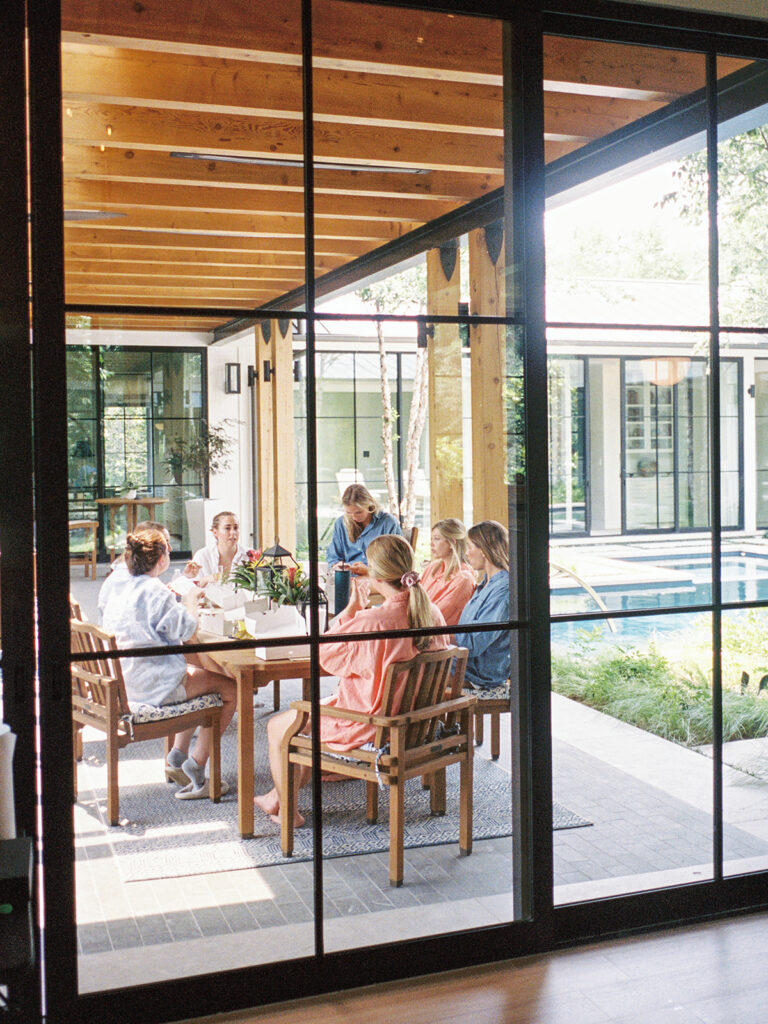 Making sure my morning started calmly, but still very much like all my mornings was important to me. I didn’t want to completely disrupt my nervous system by trying to squeeze in an intense workout or do any crazy face masks so waking up and having my morning coffee was the ticket for me. I also made sure I took the time to write Chase a letter that morning and someone very kindly hand-delivered it to him as he got ready at my dad’s house. I curated a special playlist just for the morning (which to my friends will come as no surprise) that kept the energy up while also keeping me relaxed while everyone got ready. My mom and sister helped me put on my dress as well as my nephew/godson, Everett (who immediately jumped on the train of my dress once I had it on, but luckily his boots were brand new so no harm, no foul). Once my bridesmaids and I were ready, Chase and his groomsmen came over. Chase and I got to have our first look in my mom’s backyard followed by pictures with our bridesmaids and groomsmen. Then, off to Hotel Drover we went!