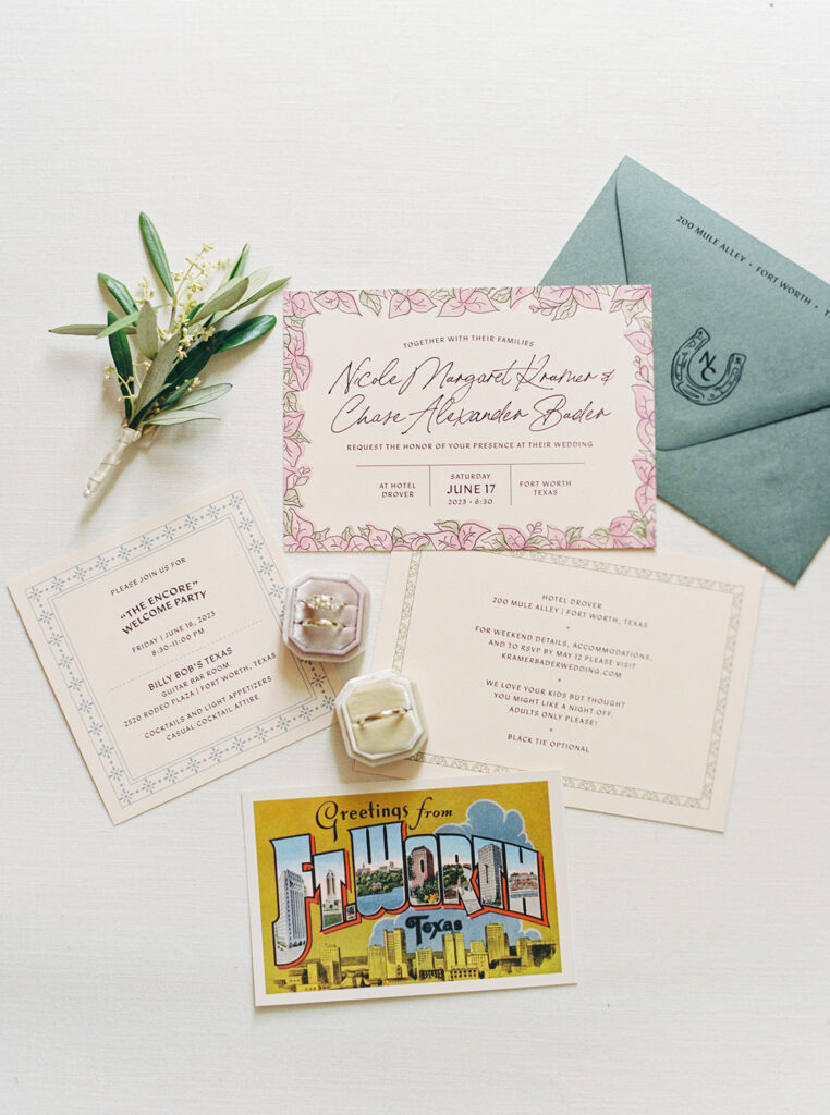 We spend a lot of time in Texas and California so finding a venue that felt naturally like a mix of both was important to us. Hotel Drover was great not only because it has beautiful Spanish-inspired architecture and landscaping that you see all around Texas and California, but it also made a great place for visitors to stay and explore the historic Stockyards and other parts of Fort Worth.
