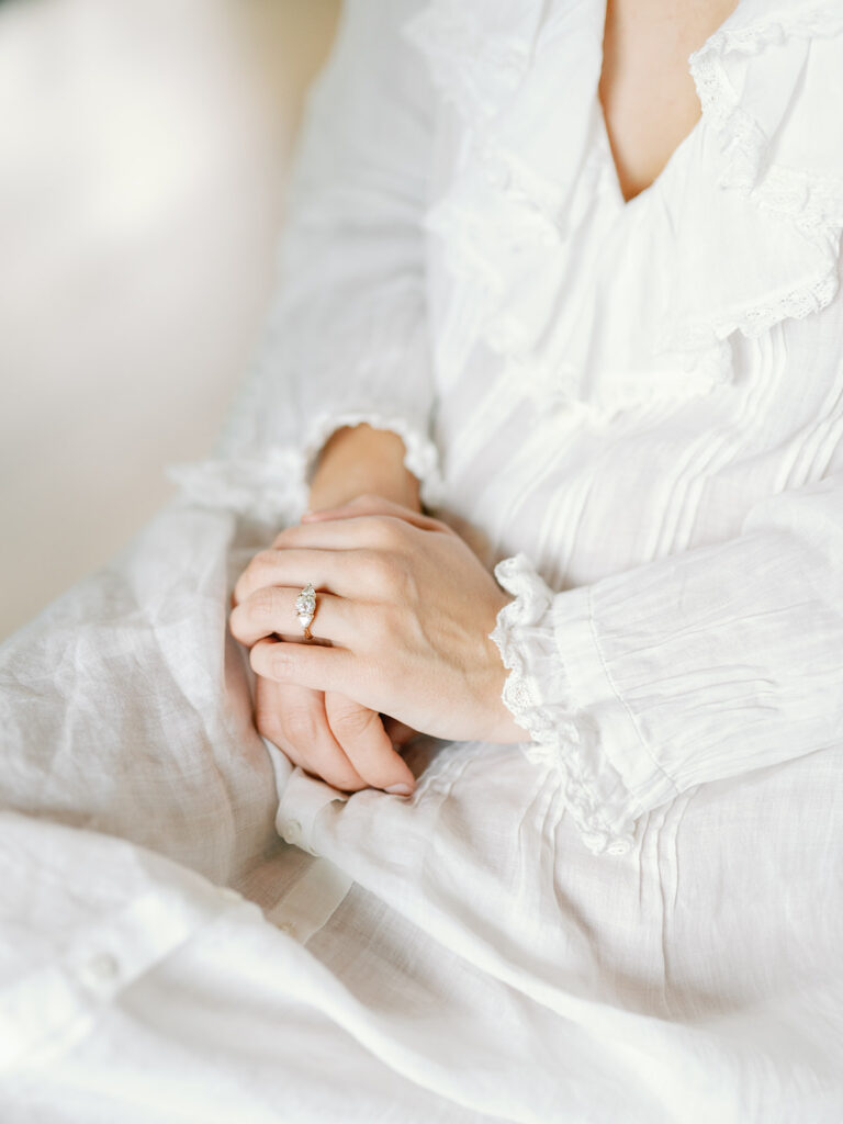 Chase had been planning the proposal for months (asking both my parents for their blessing, having the ring made, and finding a free weekend to ask me which was hard since at the time every weekend someone else was either getting married or engaged themselves AND not to mention Chase travels a lot on the weekend for his music, etc.). But in May 2022 we drove down to Chattanooga to celebrate our third anniversary and at that point, it was hard to miss that something was coming. Shortly after arriving, we got drinks at the top of the Edwin Hotel. Then we walked across the Holmberg Bridge to the Hunter Museum looking out over the Tennessee River where our first date started 3 years prior. Then Chase got down on one knee and proposed, I said yes, and off to dinner we went to celebrate! The following day Chase and I drove back to Nashville which is where another surprise was waiting for me. He had gotten our families and some of my best friends to fly in and we had an incredible engagement party at our house. To round out the evening a few of us hit Broadway in downtown Nashville where I don’t think I stopped smiling for 12 hours straight.