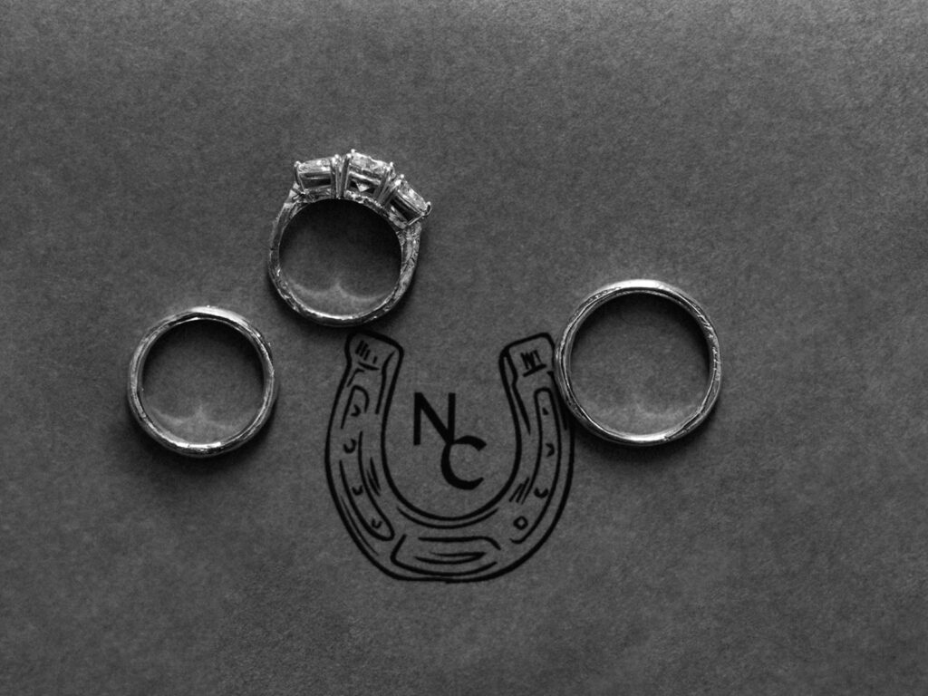 All of our rings, my engagement ring, and both of our wedding bands are by Jane Pope who is based out of Charleston. I originally fell in love with her rings because they have a subtle hammered detailing on them and Chase had mentioned how it reminded him of a symbol on a drum kit. That sealed the deal for me that we needed to have our rings made by her.