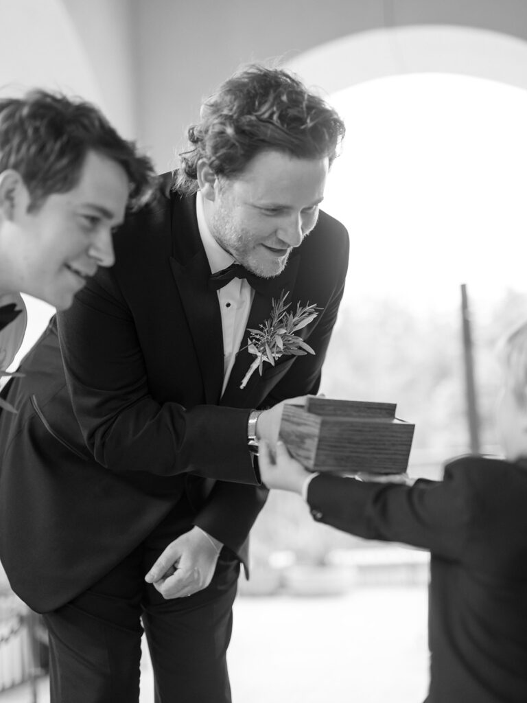 We told Chase’s groomsmen to wear traditional black tuxedos and they did just that. 🙂