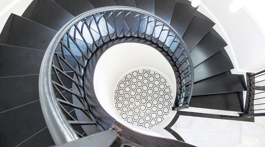 For Yolpak’s children, the soaring foyer is something else: a fantastic place to play. The floors are perfect for roller skates and scooters, and there’s plenty of space for ballgames. “They’ve played volleyball and baseball and hockey right here in the foyer,” says Yolpak, who shares the home with her husband, Tom, son Ty (age 11) and daughter Emily (age 8). Even without the presence of kids on skateboards, a sense of movement fills the house.