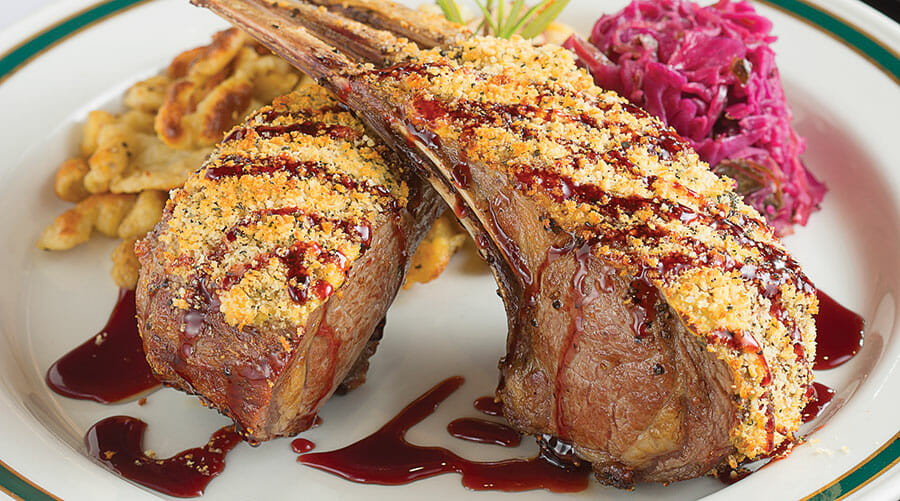 Chef Charles Youts’ rack of lamb makes the perfect centerpiece for a holiday dinner or any celebration. A combination of fruit, herbs and Dijon provides just the right sweet, fresh and tangy elements to counter the meat’s rich earthiness. Hearty, cool-weather sides can include braised red cabbage and sauteed spaetzle. The Classic’s suggested pairing with this dish is Caravan from Darioush in Napa Valley. The wine’s blend of cabernet, merlot, malbec and cabernet franc seals the festive spirit.