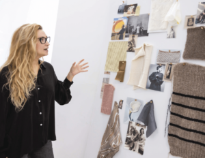 “Even though I love design — I live and breathe design — I was not aligned with the supply chains, with how people were being treated at the factory level or the lack of transparency in the types of fibers being used,” she says. “I was at this real tension point about how I continue in this space when there are elements of it that do not align with the core of who I am as a person.”