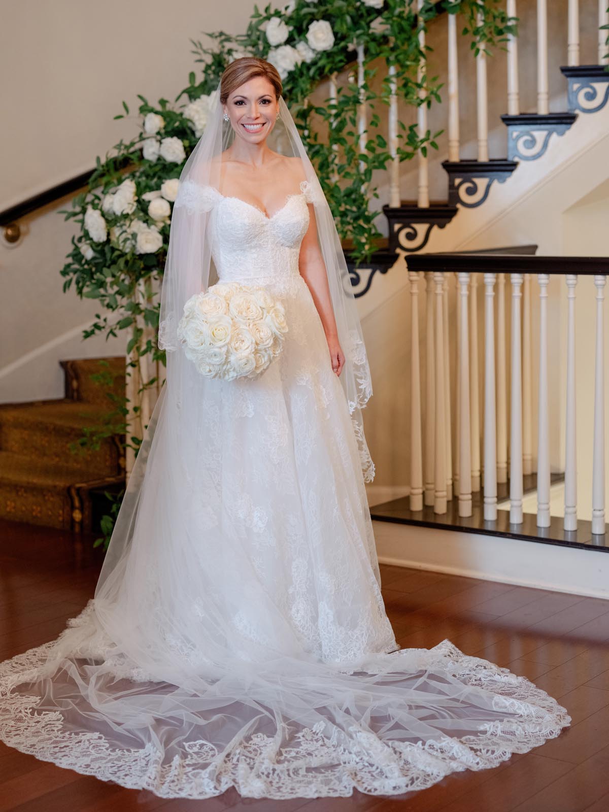 I was looking for a dress that was classical, traditional and inspired by Kate Middleton, Jackie Kennedy and Grace Kelly. After comparing different designers, I found a beautiful all-lace Monique Lhuillier dress called “Kate” — coincidently inspired by the dress worn by Kate Middleton at her wedding. It was a stunning Chantilly all-lace A-line dress with an off-the-shoulder sweetheart neckline. It checked all the boxes and made me feel like a princess!