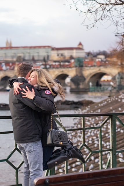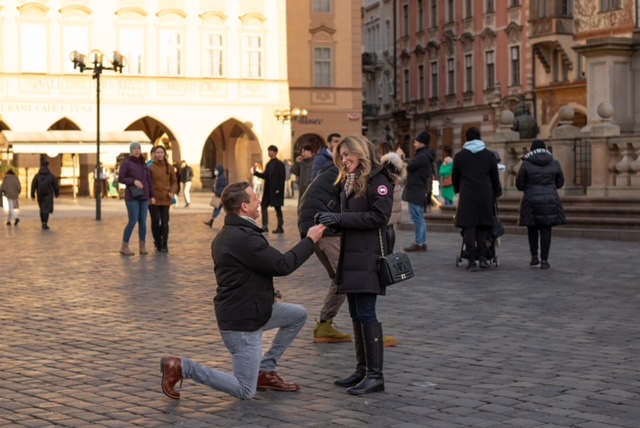 Dusty planned a trip to show me his favorite destination: Prague — a place whose culture, food, people and history I had heard so much about. I was thrilled and excited to travel with him. The day after we arrived, he asked me to be ready by 4 p.m. I assumed we were going for a tour. He walked me from the hotel to the center of the square and stopped right in front of a beautiful church. He pulled out his cell phone to take a selfie, which was code for the photographer he had secretly hired, and then got on one knee and asked me to marry him! I was so surprised and shocked that time froze. People were cheering and the noises were overwhelming. I then loudly responded “yes!” and hugged him. Happy tears rolled out of my eyes. I felt blessed and happy to find the love of my life! The person I wanted to create a family with and grow old with. My soulmate and best friend for life! He had planned every detail of the proposal and even hired a photographer to capture the precise moment!