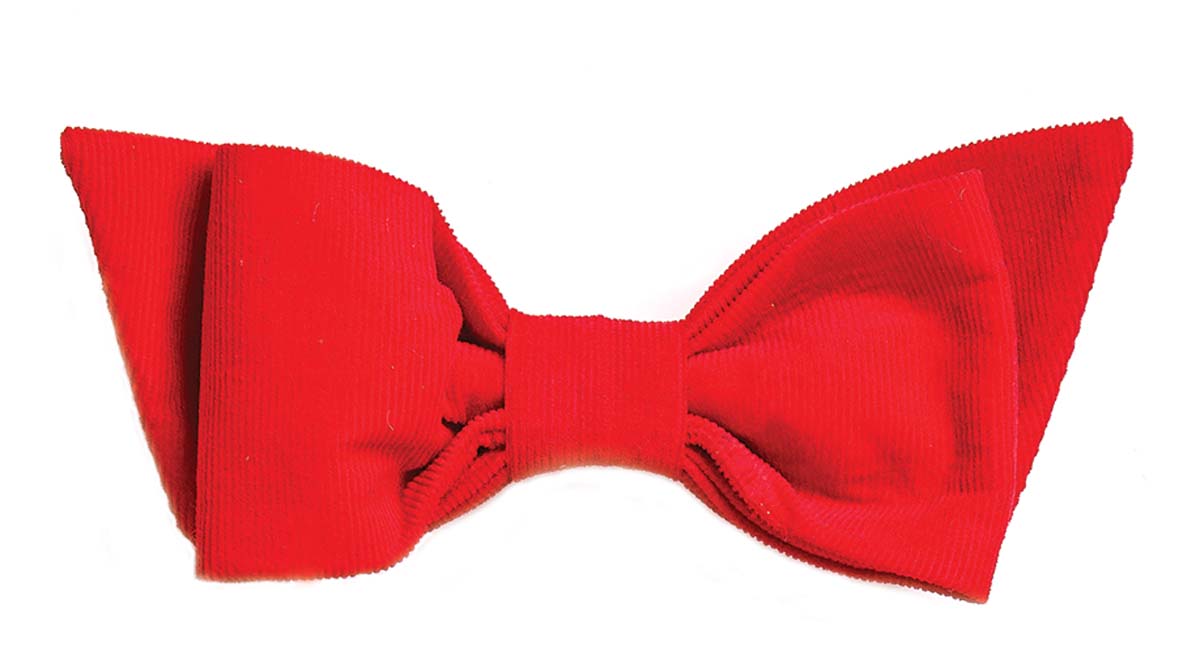 The Beckham belt in Holiday Plaid for little boys looks like the real deal, with leather and brass hardware from Fort Worth’s W Durable Goods. But the hidden Velcro closure makes it easy to adjust, $52. For her, a festive red corduroy bow, $20. Both from The Bow Next Door.