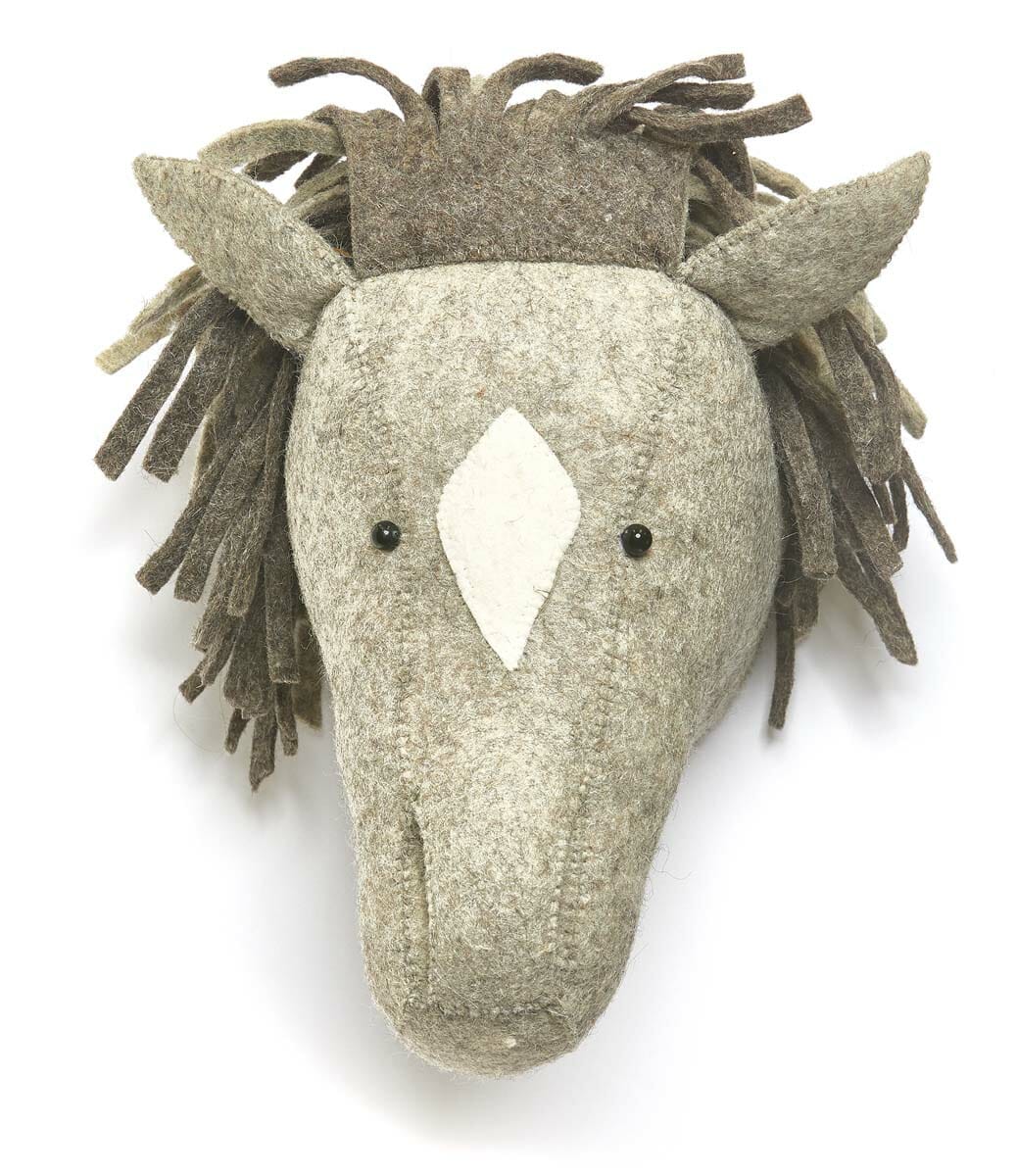 Have a horse lover in the family? Hang this floppy-haired felt horse head in their room. Other designs available include a llama. $165,  P.S. The Letter.