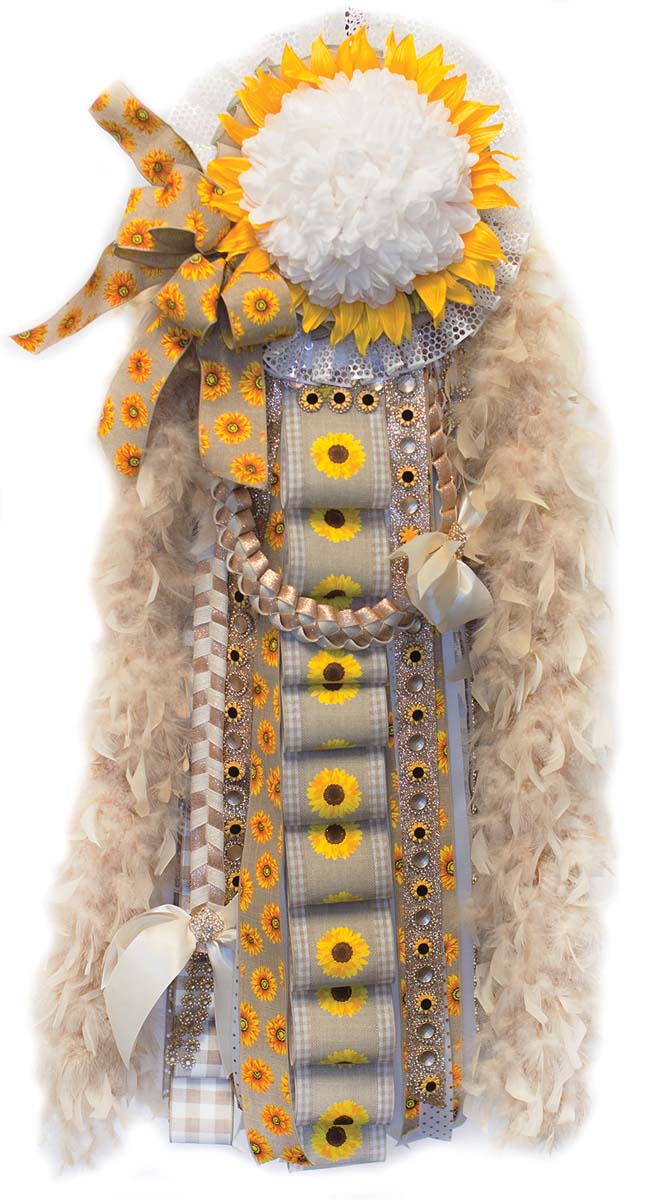 “Now this season it’s all about the braids, bows, boa and bling — the four Bs,” Valudos says. Some don’t even bother with school colors at all, and the white mum — a color reserved for high school seniors — now may be accented with rose gold, champagne or blush.