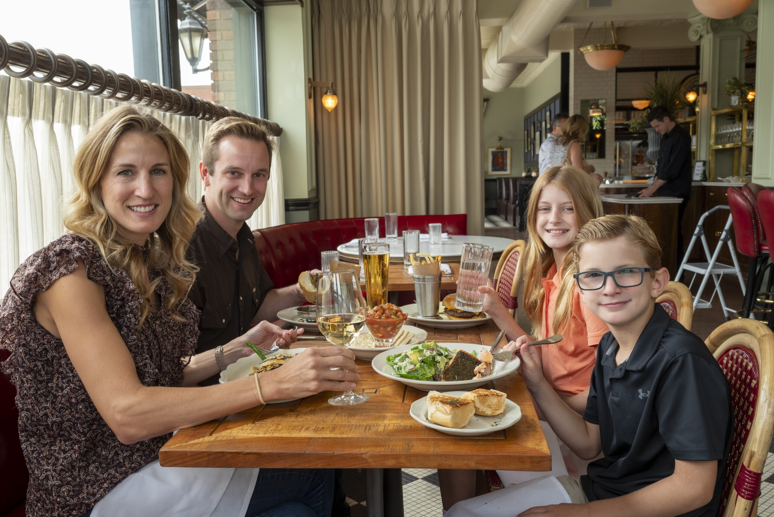 Emily and Marcus Paslay and their two children enjoy dinner at the new Walloon’s Restaurant on Fort Worth’s Near Southside.