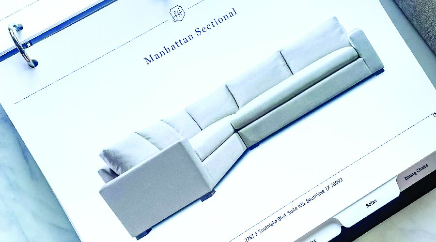 Following a recent store expansion, Southlake’s family-owned Lambert Home focused on realizing a bespoke furniture line. Interior designer Sarah Lambert and store manager Katie Lambert now are taking orders for the maple-frame furniture — made in North Carolina by generational craftsmen — and promising pieces within six to eight weeks (with some items arriving faster). Dedicated to sustainability, the sisters (who also work with their dad, project manager Don Lambert) note that their heirloom-quality pieces are well designed, affordable and easily customized. “Add a swivel, change a dimension, remove an arm — everything is possible,” Katie says. Select a hardwood frame, choose a fabric (they have new stain-proof options, too) and determine trim and other finishing details. Sarah adds, “It’s easy. And since we designed it, we can help shoppers through the process.”