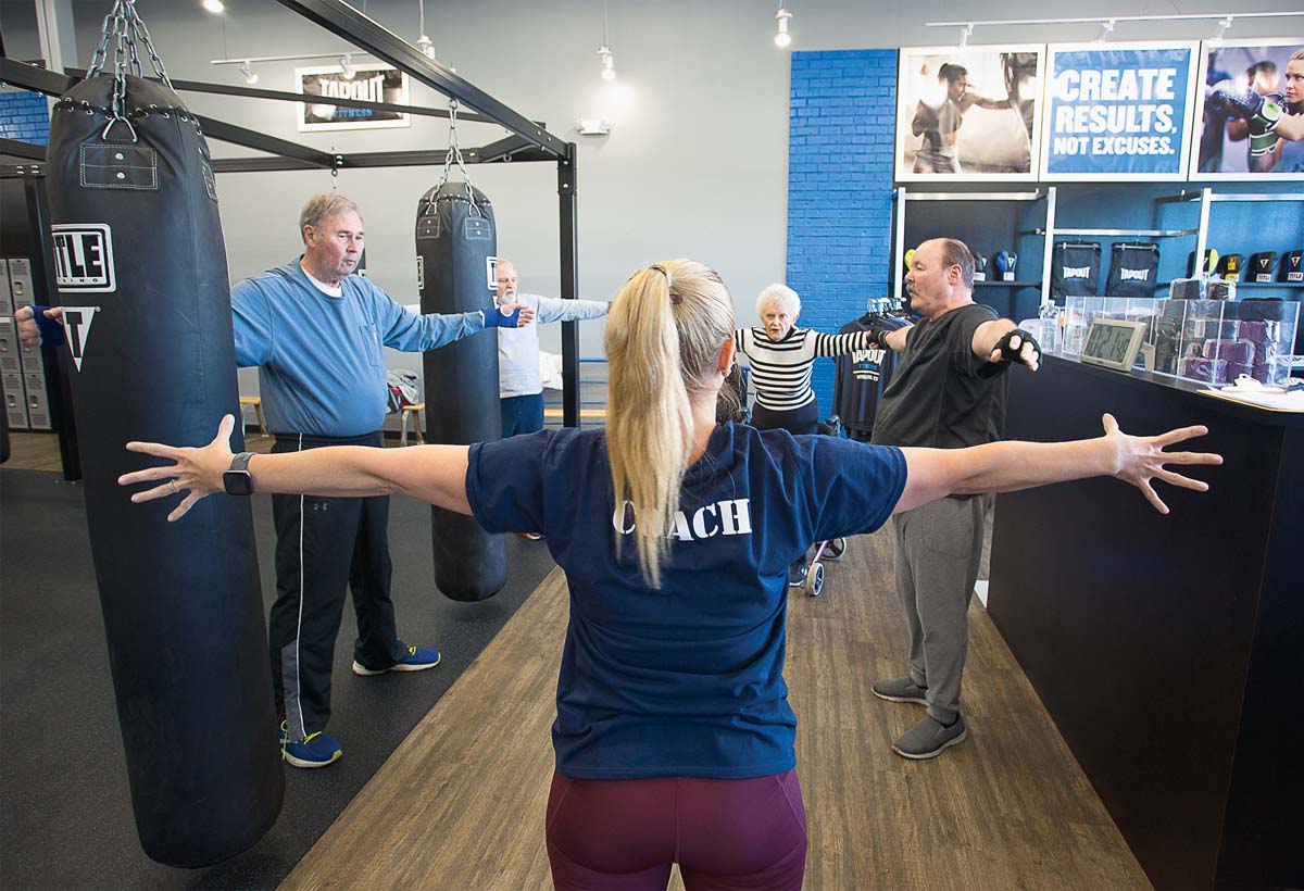 As “The Twist” reverberates throughout a Southlake gym on a weekday morning, a small group of seniors try their best to land uppercuts on punching bags to the beat of the infectious Chubby Checker classic.
