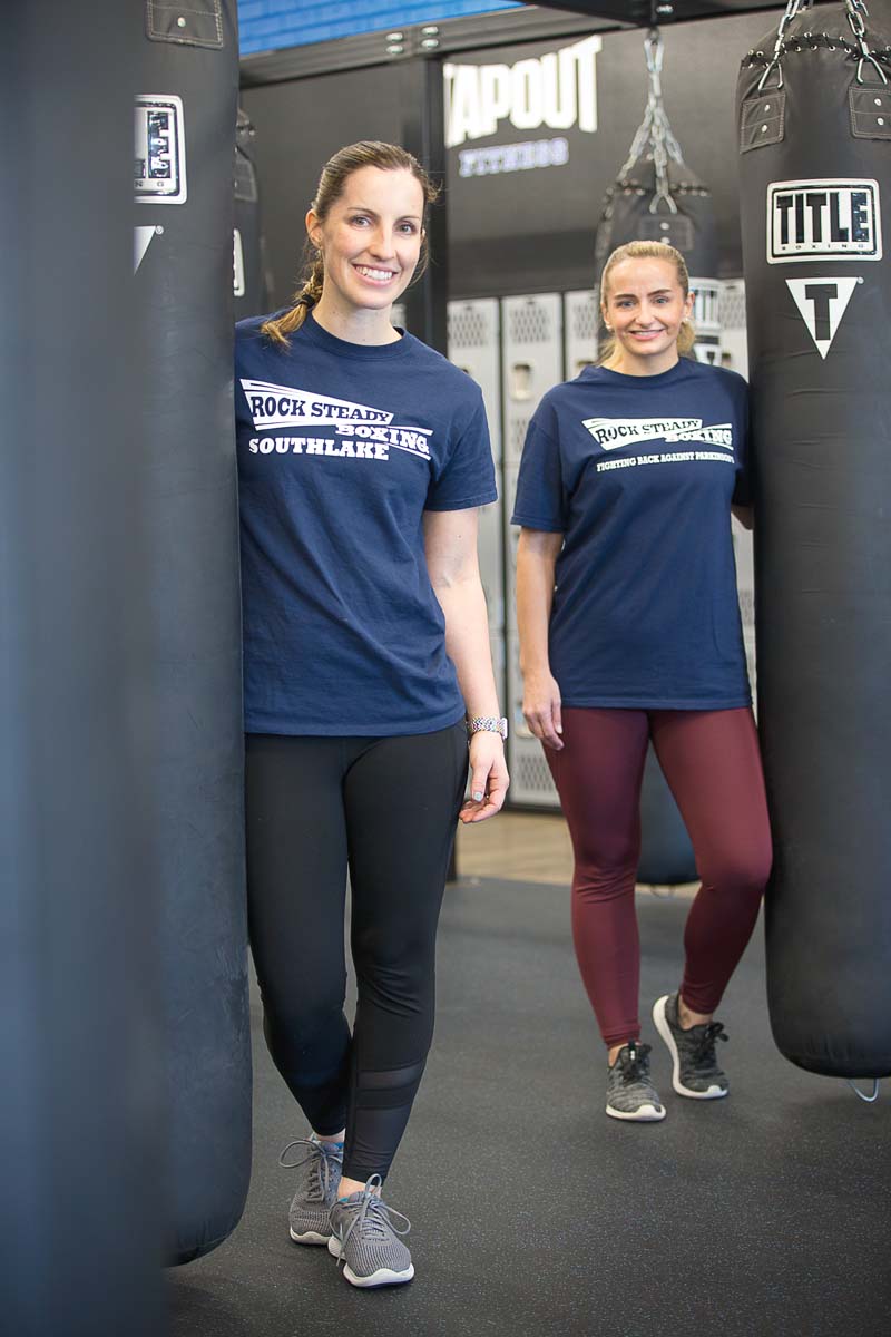 Mallory Spoonts, left, is one of the owners of Rock Steady Boxing in Southlake and Dallas, and has a background in neurologic physical therapy. She also studied with the man who founded the nonprofit program. Lisa Aschenberg, part of the RSB team, has a background in ballet, running and weightlifting.