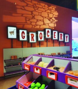 The retro food market from FWMSH’s last incarnation still attracts little kids to fill up miniature shopping carts as they wheel through the faux wares.
