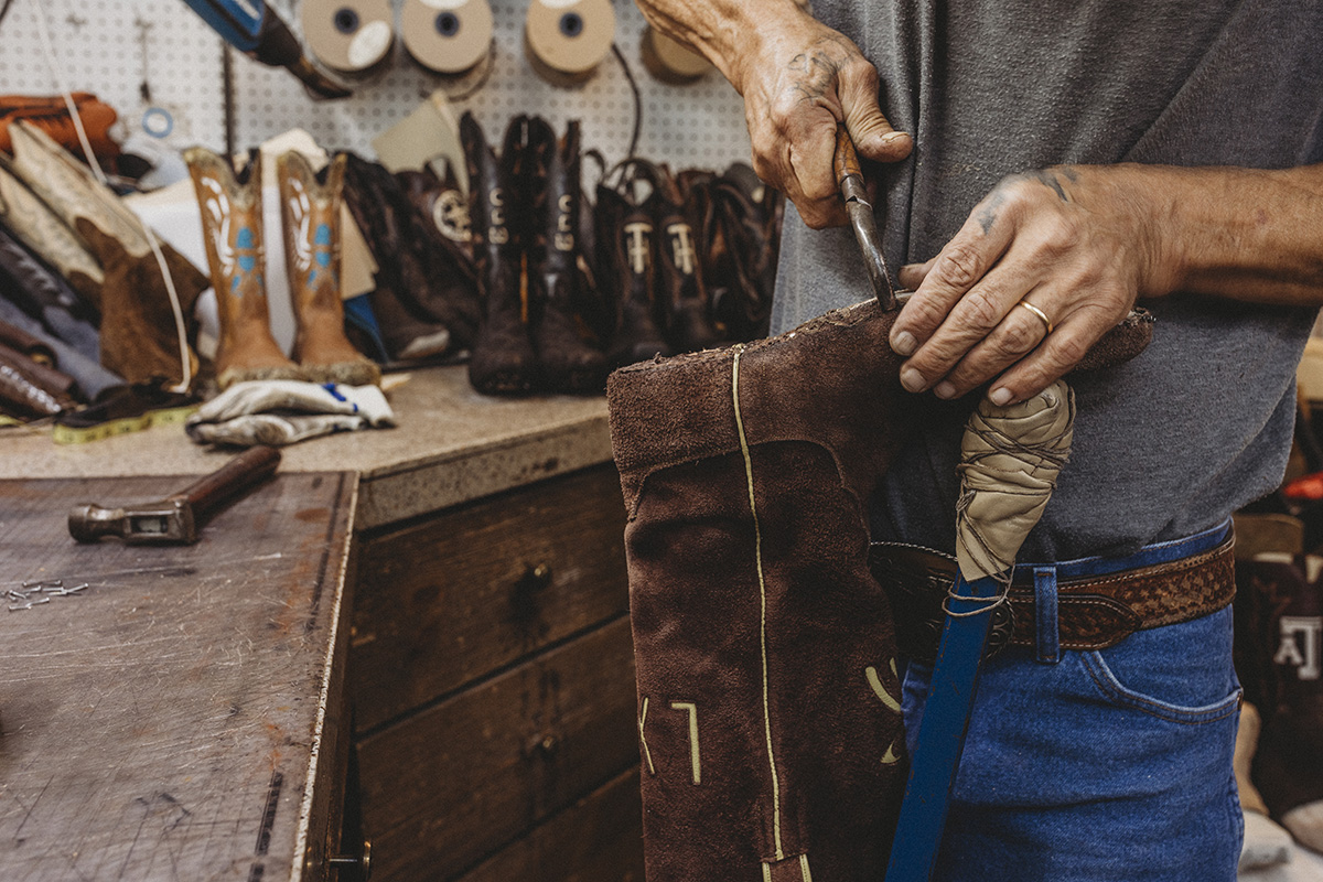 “There’s 224 steps to building a custom pair of boots,” Parker says. “Every stitch, every cut — it all has a reason.”