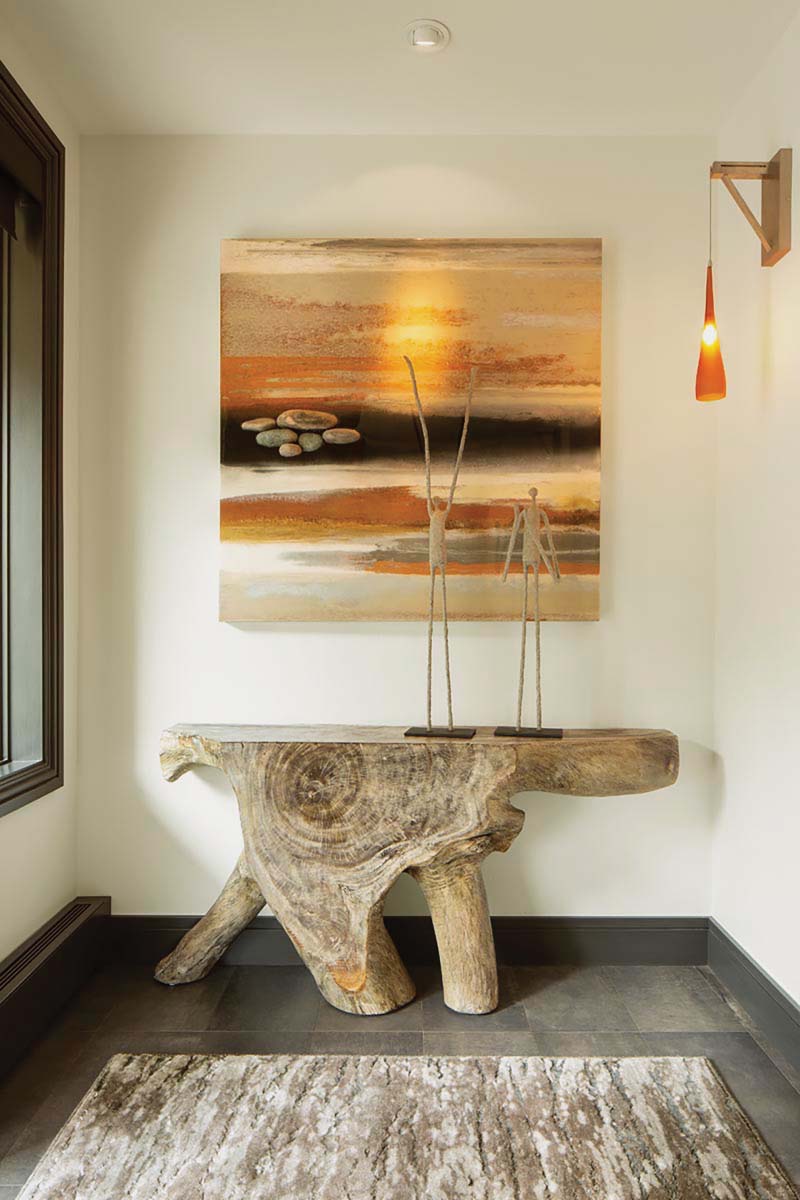 Her business is named Art Rocks Studio, inspired by her use of river rock from Colorado along with the slate and occasional gemstones. She also sleuths out driftwood for special projects. “In Colorado, no one wants to go hiking with me because they know I’ll make them carry wood and rocks.” In February, she traveled to the Tucson Gem and Mineral Show, one of the largest in the world, to find a few treasures to take home.