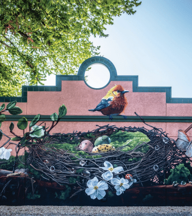 Driving down Camp Bowie Boulevard, it’s hard not to notice a steel raptor sculpture outside a copper-colored building trimmed with green. A mural covering one side of the building tells a story using a bird’s nest, three eggs, a bird, bugs and a flowering blossom in the bottom-right corner.