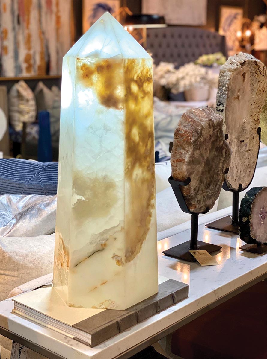When your husband purchases 10,000 rocks from Brazil, you need a place to put them. So says Ragan Aguilera, who, along with Oscar, owns Sally Lynn Home, a home furnishing and accessories retail store. Now the couple is opening a shop in Southlake Town Square devoted exclusively to the organic and natural pieces that are so popular with their clients. From decorative geodes to onyx lamps to teak-root side tables, the focused selection at the new store is a departure from the couple’s furniture showroom in the Shops of Southlake and the massive office/warehouse where most of their furniture inventory is kept. “We plan to be open by August,” says Ragan, who adds that they got sidelined a bit while helping furnish their son’s new store, The Vault, which specializes in Cult and other collectible sneakers and a small selection of apparel. The Vault is also located in Southlake Town Square and opened in early July with a line that stretched down the block.