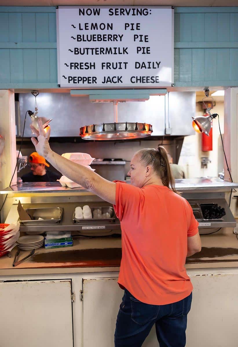 The cafe is open for breakfast and lunch, drawing a lot of customers from the Lockheed Martin Aeronautics plant and a lot of retirees. “A lot of them, it’s their social event of the day,” Hancock says of the retirees. “People ask what we’re like. It’s ‘Cheers’ without alcohol.”