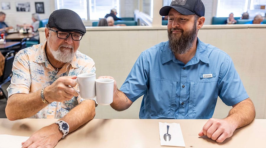 The cafe is open for breakfast and lunch, drawing a lot of customers from the Lockheed Martin Aeronautics plant and a lot of retirees. “A lot of them, it’s their social event of the day,” Hancock says of the retirees. “People ask what we’re like. It’s ‘Cheers’ without alcohol.”
