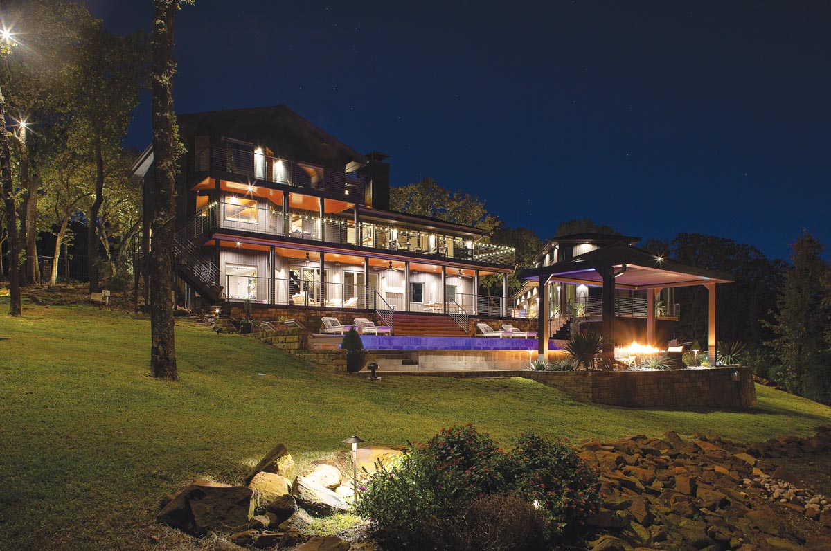 When Amy and Brian Naughton discovered a midcentury house long devoid of love (and being sold as a tear-down), they shared an immediate appreciation of the Lake Grapevine property’s scenic overlook. The thickly wooded 2-acre lot with a ski-slope descent won raves from both. As for the house: Two very different perspectives emerged. Amy wanted to tackle a complete renovation of the unique, if rundown, tri-level structure. Brian was sure starting fresh was the way to go. Both understood the magic of the surroundings.