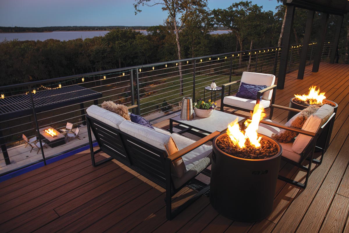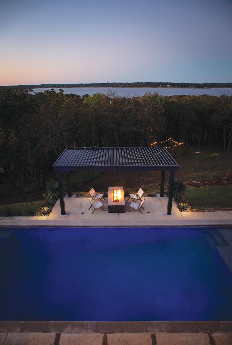 This summer, family and friends (the Naughtons have three daughters — two in high school and one at Baylor) enjoyed splashy good times in the pool along with coffee and wine hours on the decks and at poolside. This fall allows the family their first opportunity to enjoy an outdoor fire in cool weather.