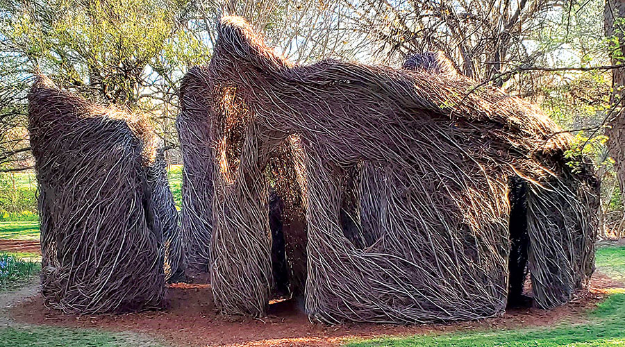 Patrick Dougherty’s stick sculpture already has survived a Texas snowstorm plus blustery spring winds and rains. The sculptor finished his piece mid-February at the Fort Worth Botanic Garden, following a three-week timeline. Dougherty worked alongside son Sam, his full-time construction assistant, as well as local volunteers. In a just-released documentary called Stickman, Dougherty said he was inspired by some mounded shrubbery that he termed “crescents,” for his FWBG design. You’ll find it in the Fuller Garden; it appears like a micro village of free-form huts. It’s designed as an interactive piece that visitors can walk in and through. We followed a squirrel as he scurried about the structures. Dougherty builds his stick sculptures to withstand the elements for typically up to a year. A 5-minute piece produced by EC Films in conjunction with the FWBG and Botanical Research Institute of Texas shows his process and method. Find it at youtube.com/watch?v=jN9wXUMjPAw. See the work in person at the garden, 3220 Botanic Garden Blvd., fwbg.org.