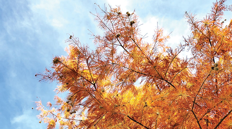 With our short Texas autumns, the turning of the tree leaves — one of life’s simpler pleasures — can be a fleeting but intense reprise from our day-to-day worries. Leaf peeping isn’t as popular here as it is in some states, but there are many local tree varieties that herald the new season with a blaze of color. That said, with last winter’s brutal freeze, the relatively mild summer and the late arrival of fall (even for Texas), we aren’t sure when the turn is going to happen this year. Will we be hanging holiday lights and raking the lawn on the same day? Maybe.