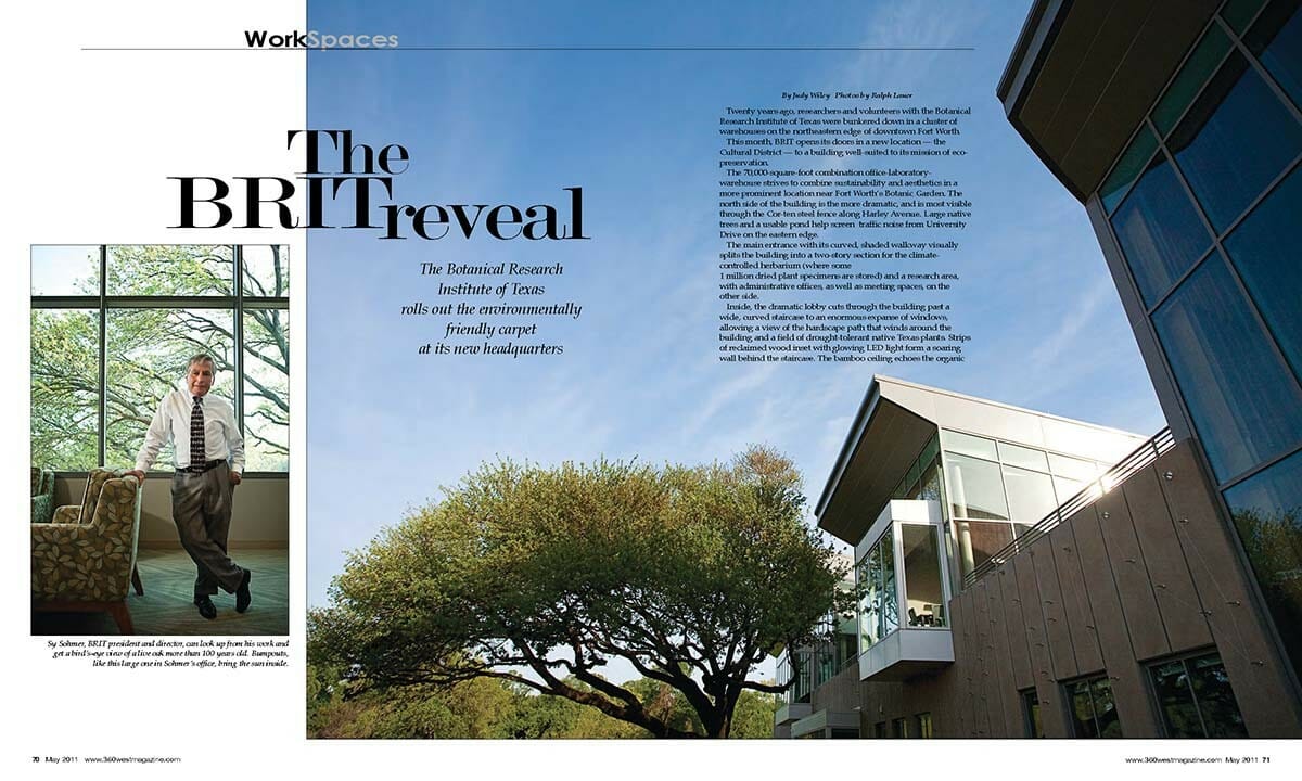 Just down the street, in 2011 we toured the new campus of BRIT, the Botanical Research Institute of Texas, and marveled at its innovative, eco-friendly features like the living roof, rainwater collection system and parking lot broken up with garden spaces.