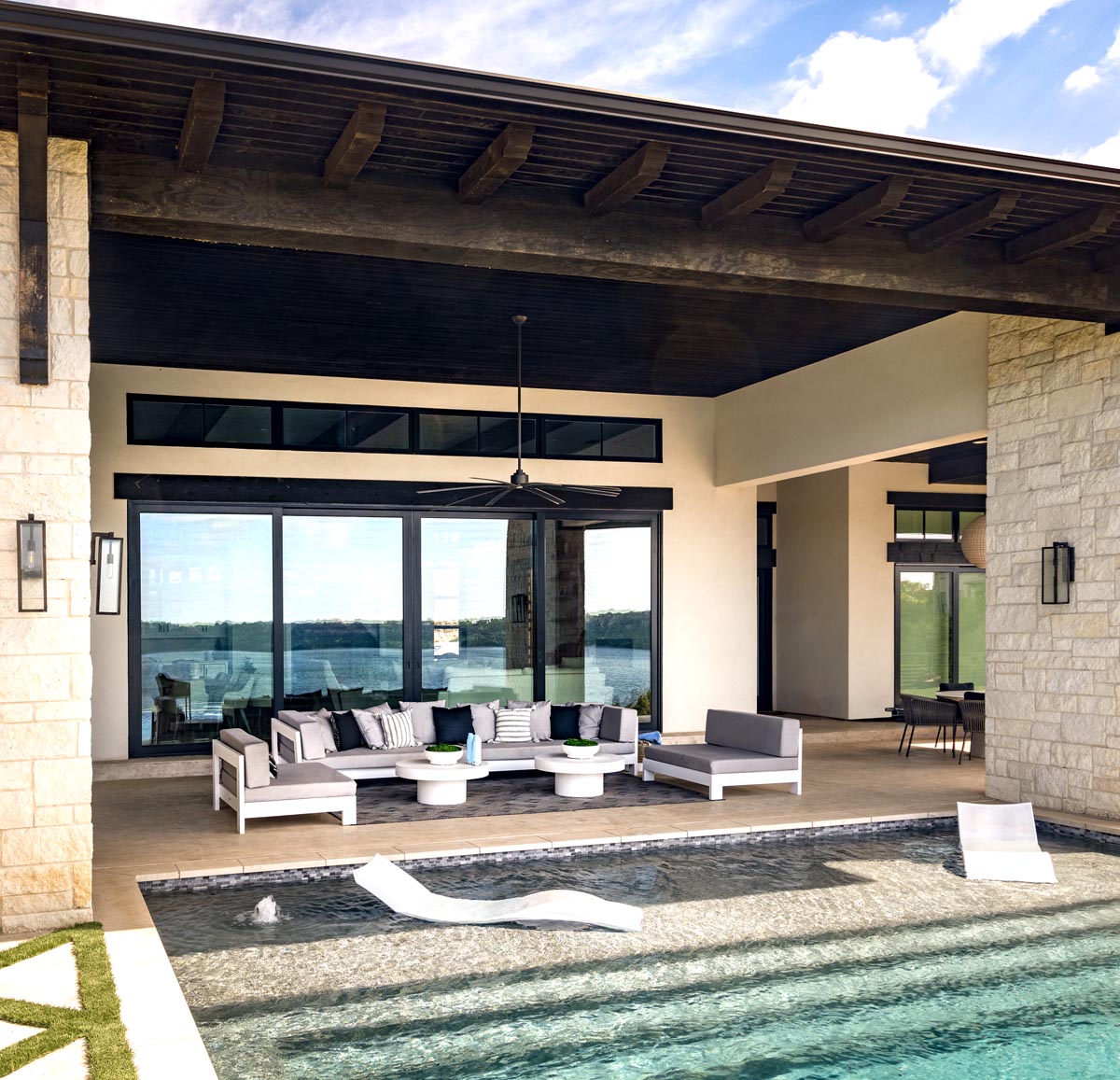 It might come as a surprise to know the owners of a 5,600-square-foot summer residence on a limestone cliff overlooking Possum Kingdom Lake were working on a budget. “It is a second home,” the family’s designer, Terra McNutt, says.
