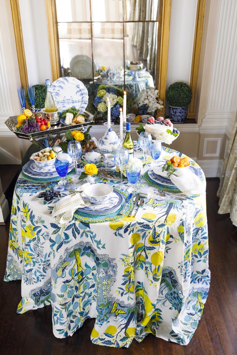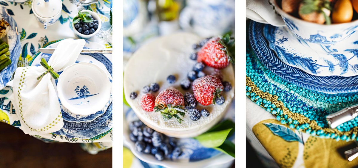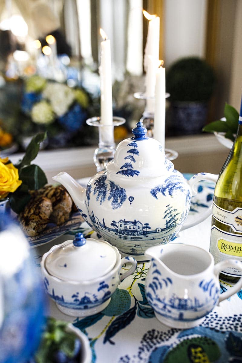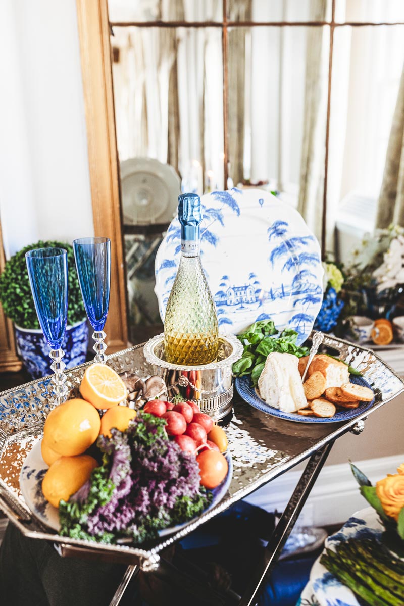 Juliska “Country Estate Delft Blue” dinnerware and Graham Bar Tray & Stand