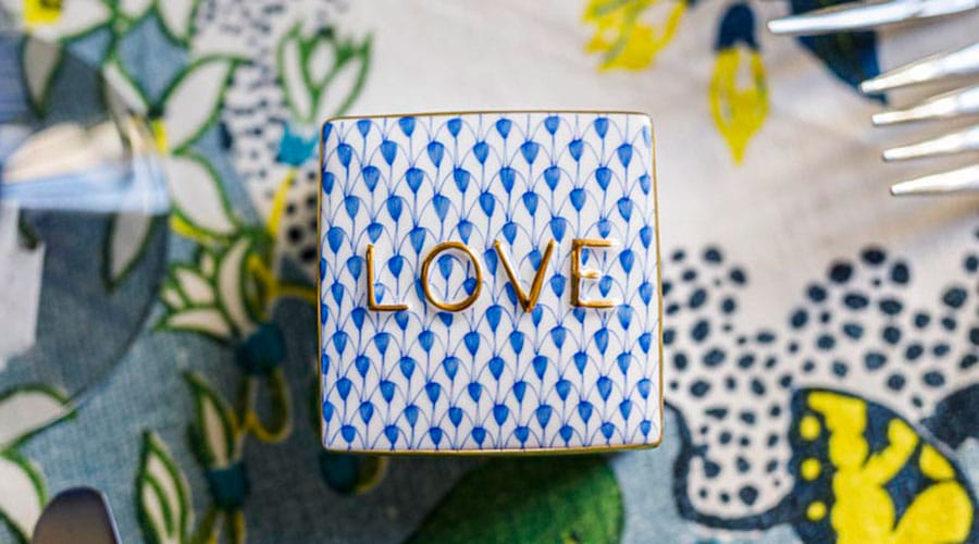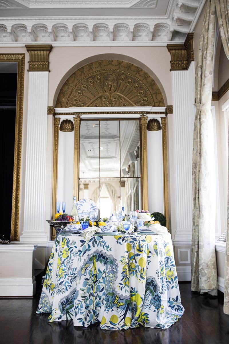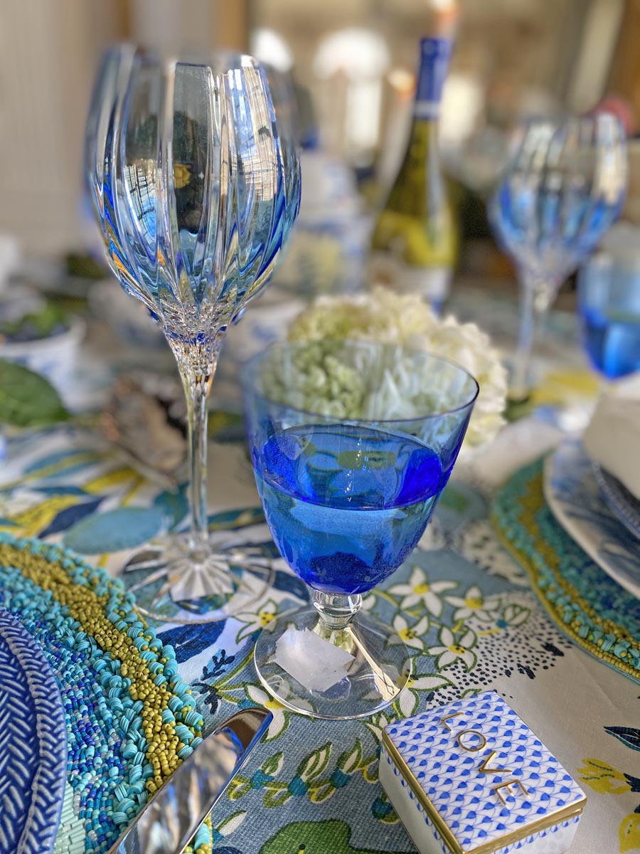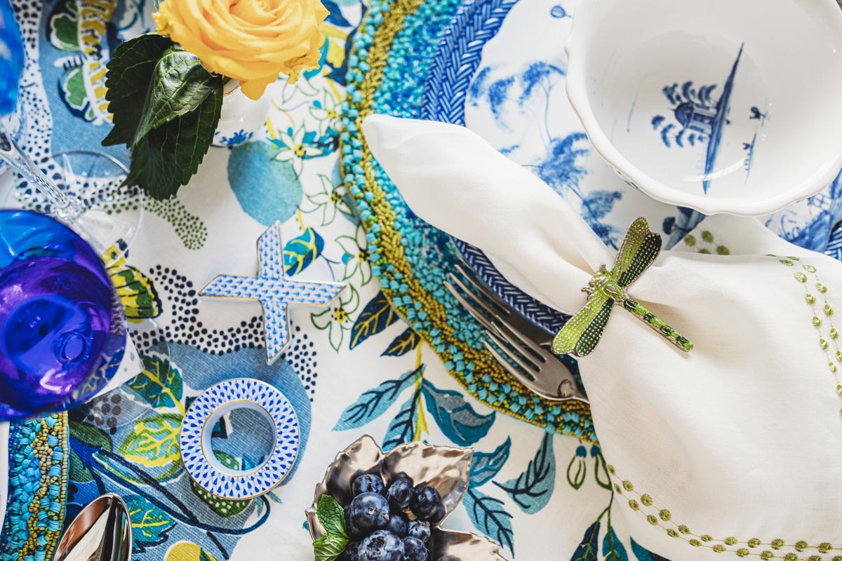 Juliska “Country Estate Delft Blue” dinnerware and Graham Bar Tray & Stand