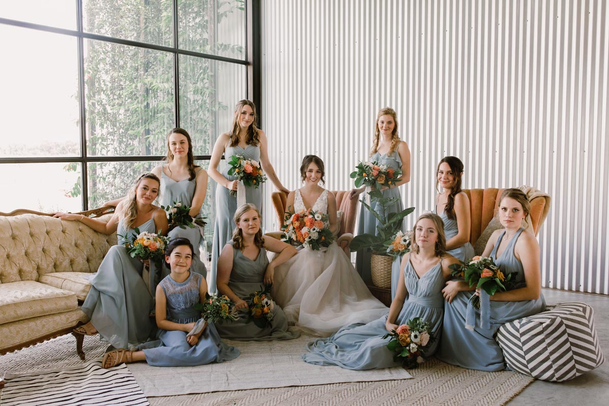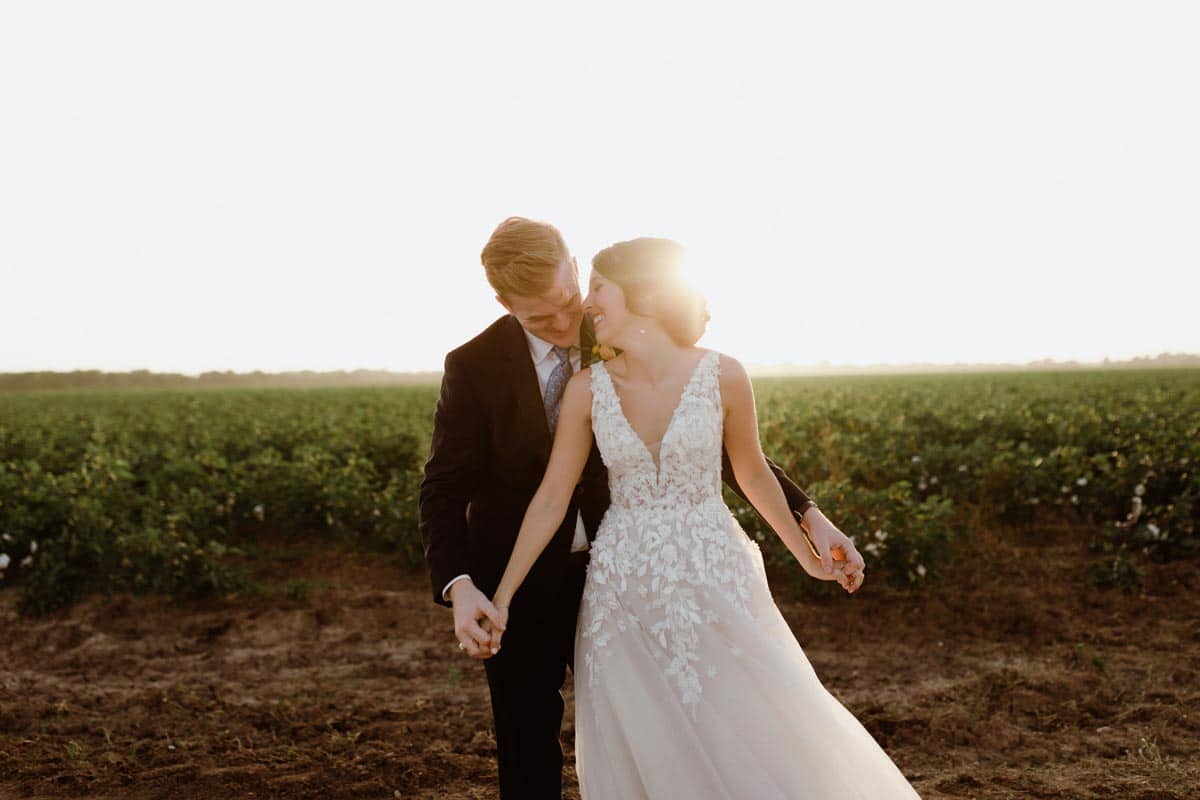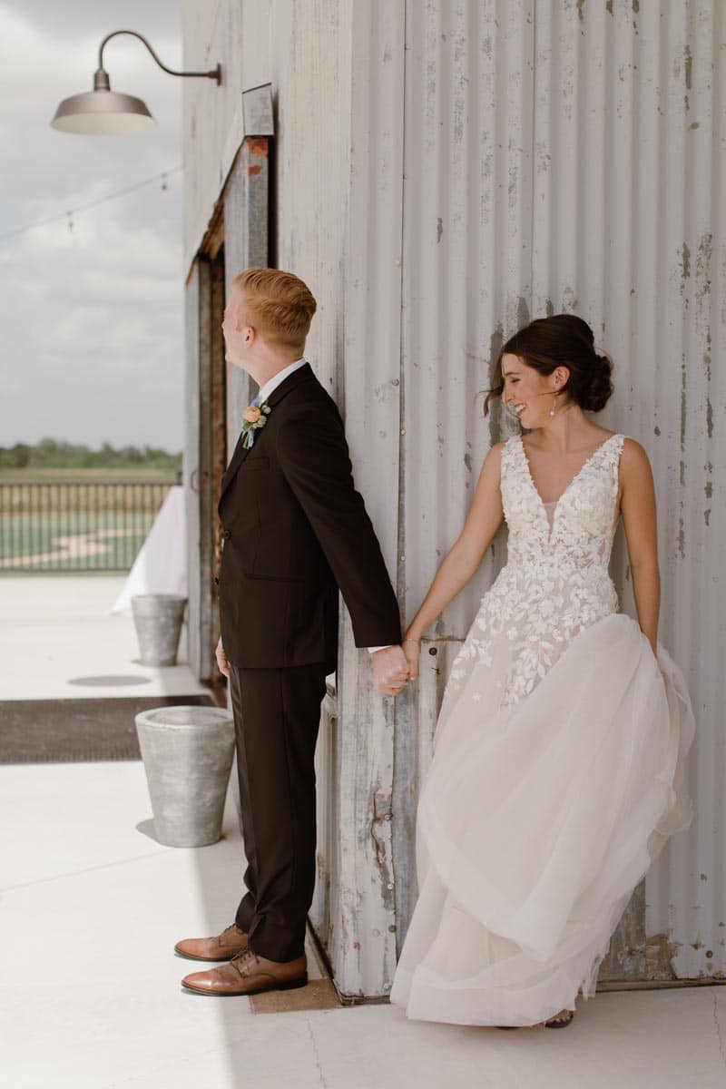 Photography: Liesl Claire Photography, Dallas; Venue: The Gin at Hidalgo Falls, Brazos County; Flowers: Unforgettable Floral, College Station; Videography: Here After Films, Austin; Rentals: Party Time Rentals, College Station; Cake: Carly Cake Sweets, Bryan; Caterer: Buppys Catering, Bryan; Drink service: Cocktails 4 U, College Station; DJ/Band: Downtown Event Services, Bryan; Rehearsal dinner venue: Buppys Catering, Bryan; Wedding dress: BHLDN, Houston; Veil, shoes, garter, other accessories: DSW, Francescas, Etsy; Bridesmaid dresses: Azazie; Groom/groomsmen attire: Black Tux; Jeweler: Lyles Degrazier, Dallas; Place cards: Ascribe Designs, Bryan; Hair & makeup: 5¢ Hair Designs, College Station; Ceremony music: Colette Harris