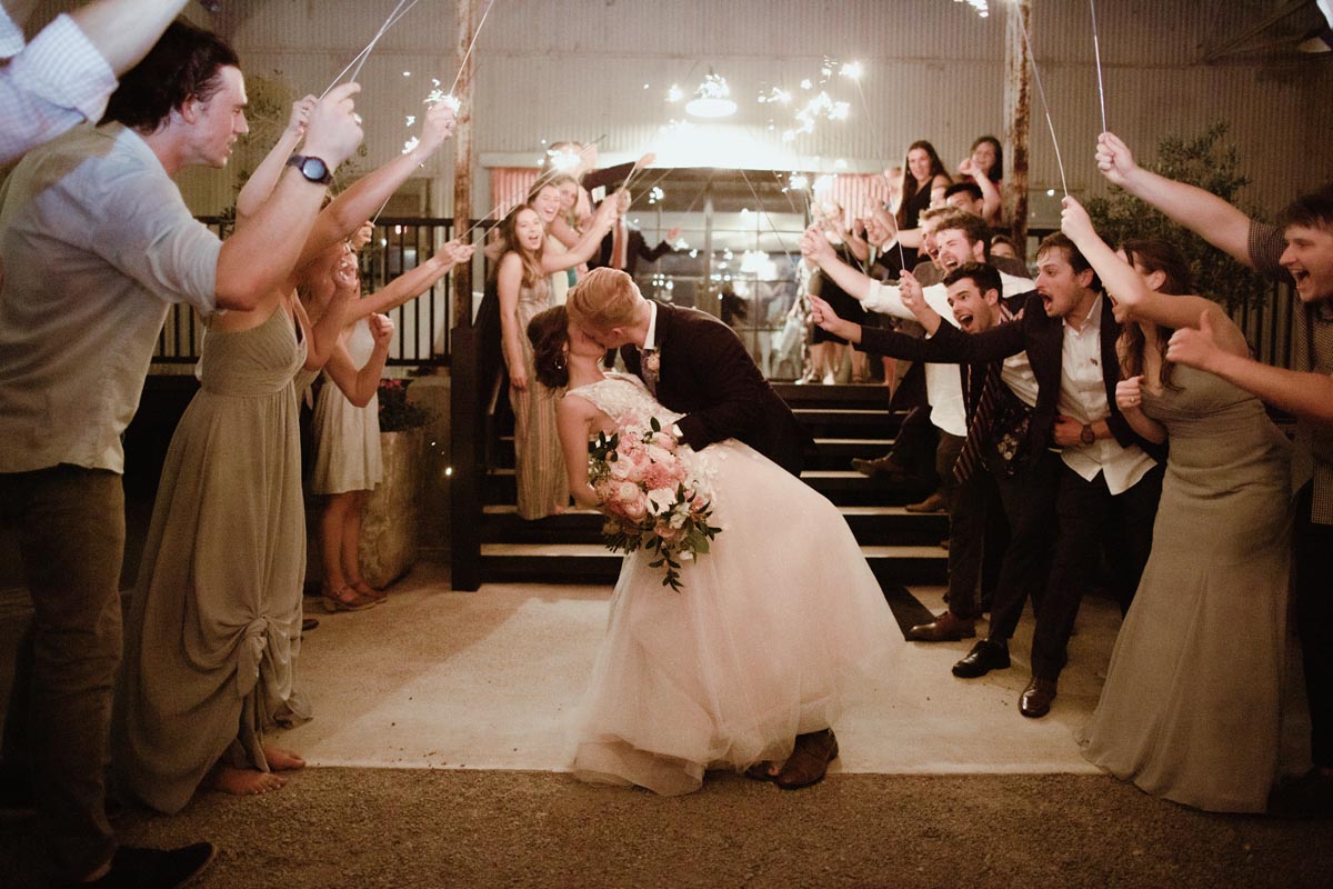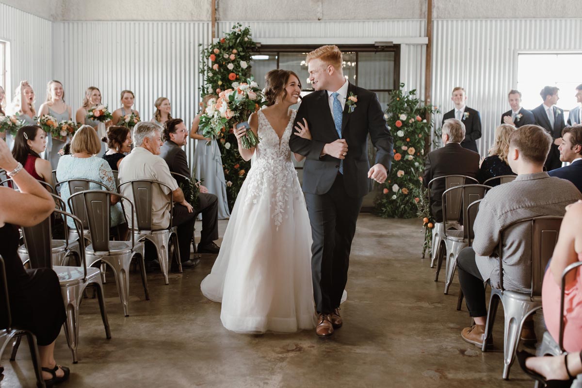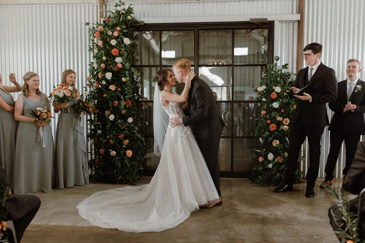 The couple chose The Gin at Hidalgo Falls as their venue because its industrial vibe was perfect for unifying every aspect they wanted to include from the tablescapes to the floral arches.