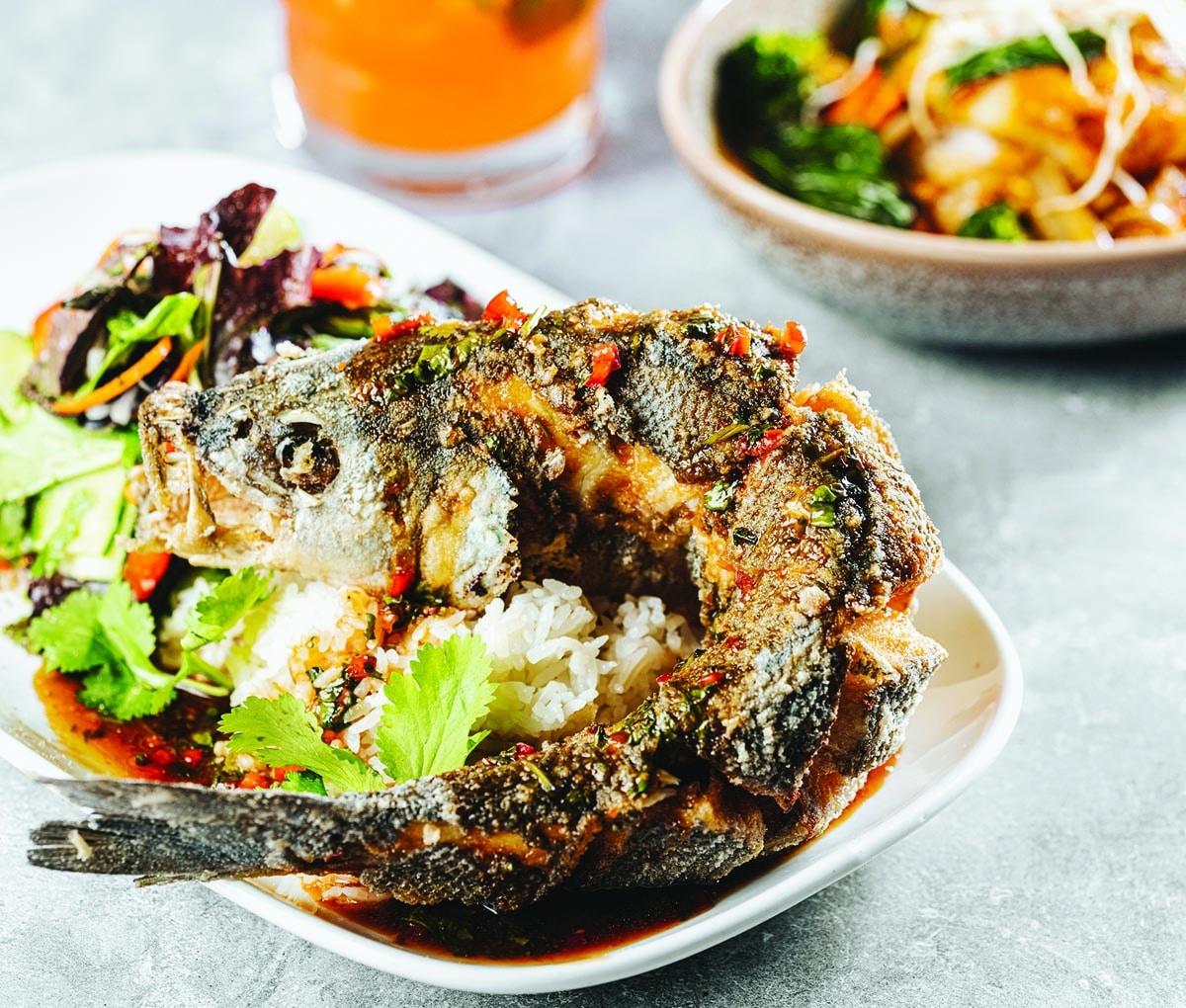 Whole crispy branzino is a specialty at Malai Kitchen.
